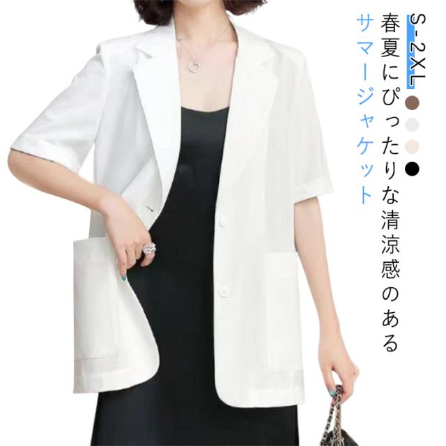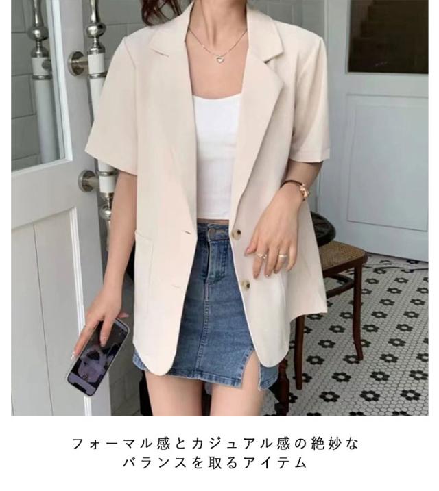 トップス 春服 カジュアル サマージャケット 夏服 40代 30代 レディース 春夏 ジャケット 50代 夏 半袖 春 人気 大きいサイズ きれいめ 長め ロング ルーズ テーラード 無地