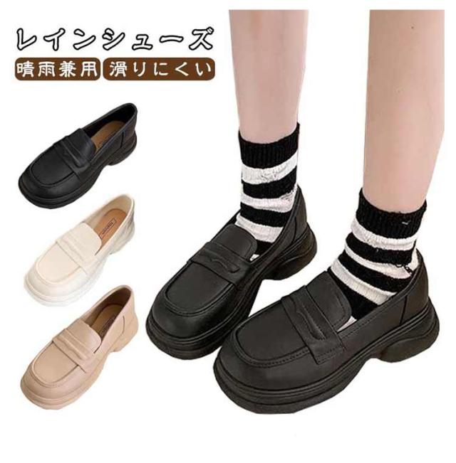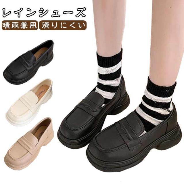 靴 梅雨 ローファー 防水 レインシューズ おしゃれ レディース 雨 対策 雪 台風 ラウンドトゥローファー レインブーツ きれいめ レイン 軽量 滑りにくい 歩きやすい 撥水 晴雨兼用 厚底