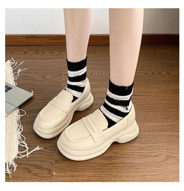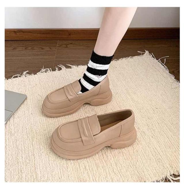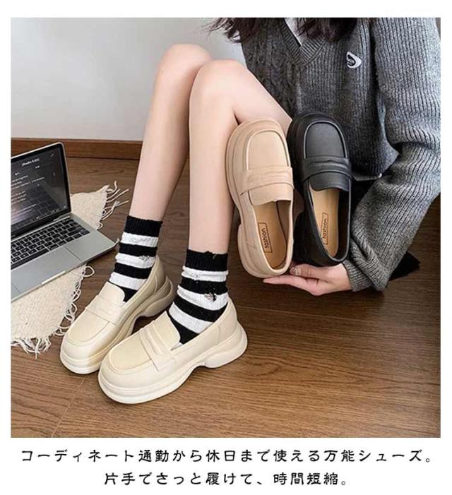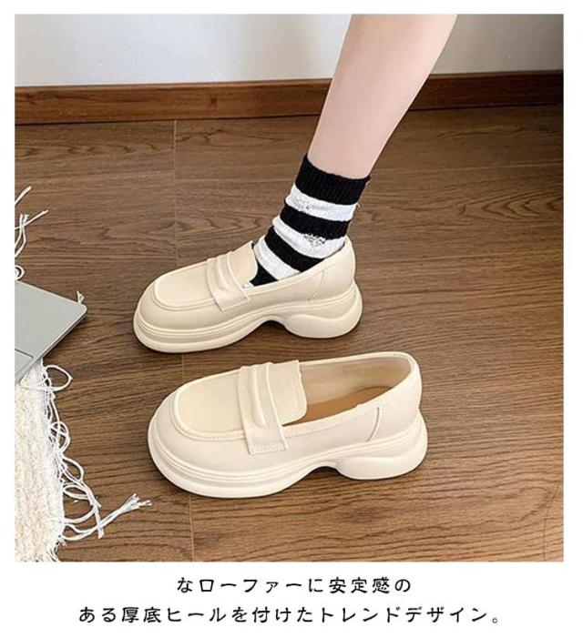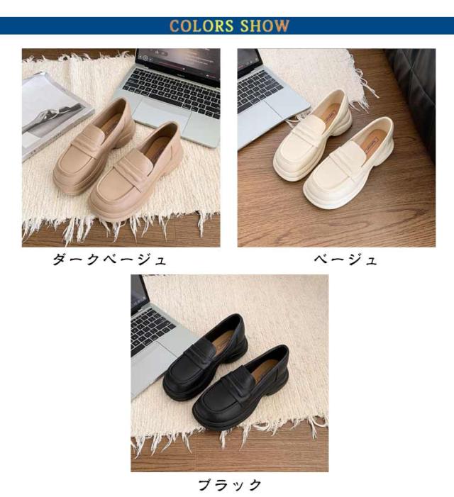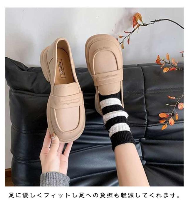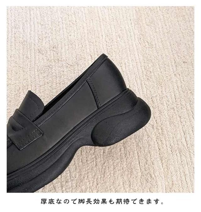 | なローファーに安定感のある厚底ヒールを付けたトレンドデザイン。 厚底なので脚長効果も期待できます。 足に優しくフィットし足への負担も軽減してくれます。 防滑ソールを使用しているので、濡れた路面でも安心して歩けます。 コーディネート通勤から休日まで使える万能シューズ。片手でさっと履けて、時間短縮。 | |