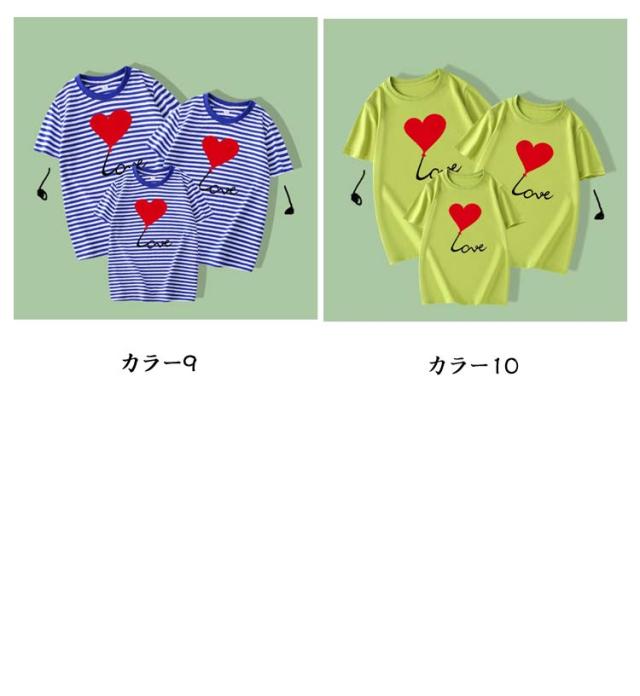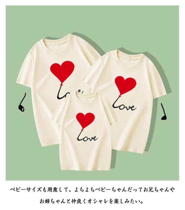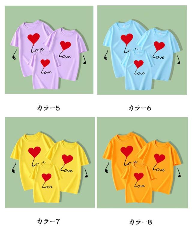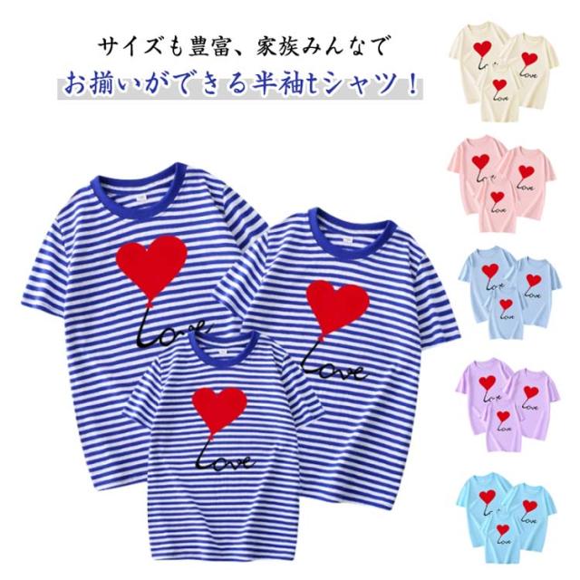 ペアtシャツ tシャツ親子 お揃い ペアルック お揃いtシャツ おそろい ペア 親子コーデ おしゃれ 誕生日 半袖Tシャツ 半袖 ハート柄!家族 大きいサイズ 親子お揃いTシャツ 3人 プレゼント リンクコーデ 親子ペア パパ ママ 子供おもしろ 90〜150