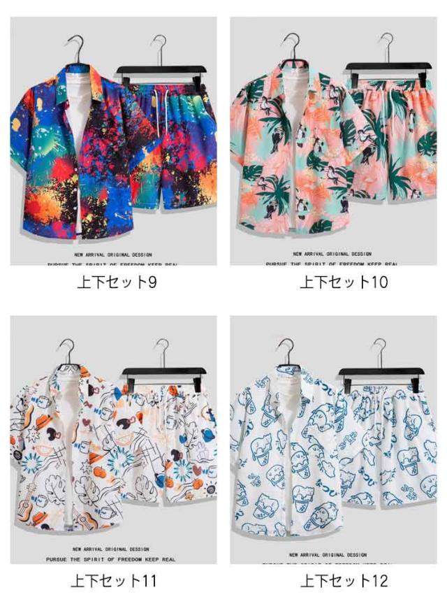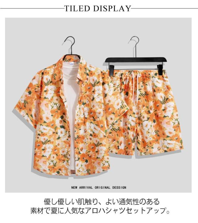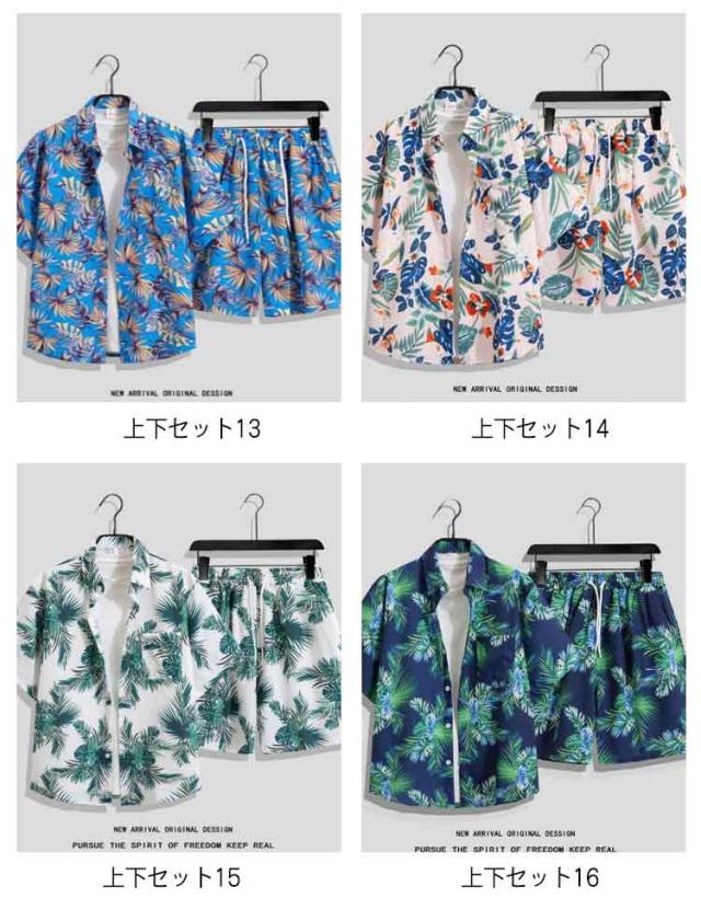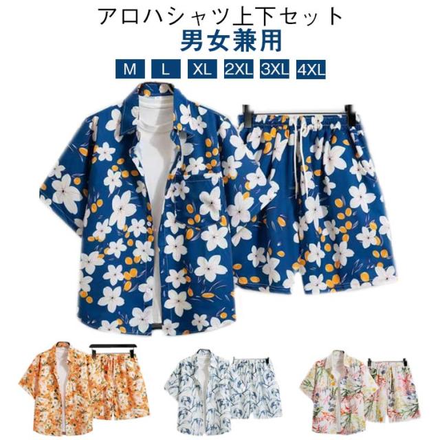 レディース セットアップ アロハシャツ 総柄シャツ メンズ 夏服 上下セット 夏 ハーフパンツ 薄手 夏 部屋着 ルームウェア カジュアルシャツ ボタニカル柄 ショートパンツ ビーチ リゾート