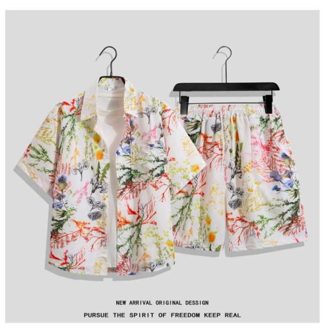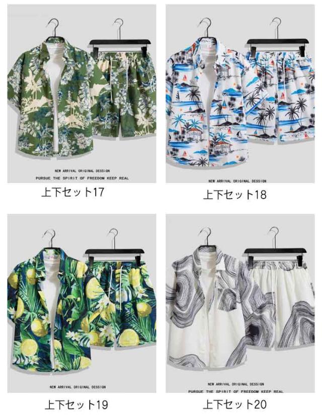 | アロハシャツ上下セット♪男女兼用 優し優しい肌触り、よい通気性のある素材で夏に人気なアロハシャツセットアップ。 夏らしいボタニカル柄で季節感を感じるコーディネートに! ユニセックスなデザイン、ペアルックとしてもオススメ。 | |
