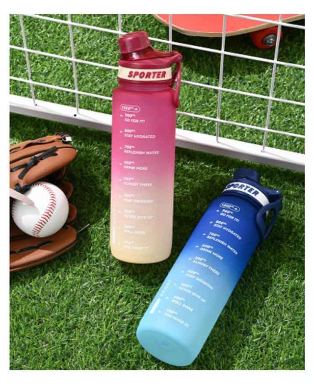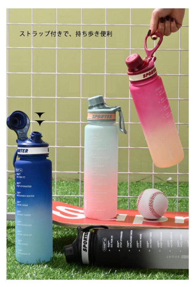 目盛り 水筒 プラスチック 女子 1l 大容量 水筒 ウォーター ボトル 水筒 スポーツドリンク キッズ ワンタッチ 子供 可愛い ウォーターボトル 直飲み 女の子 おしゃれ タイムマーカー 軽量 大人 水筒 ジム ヨガ スポーツ