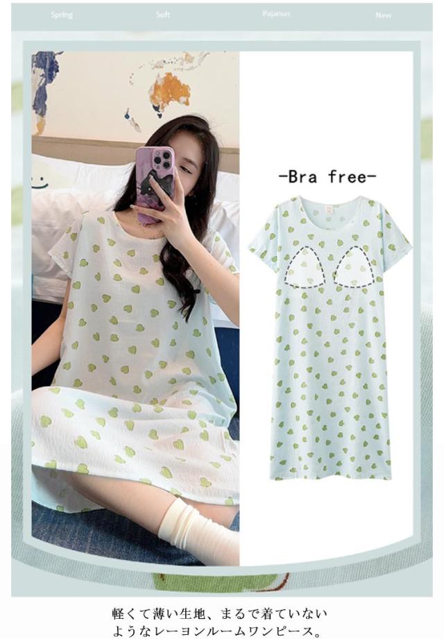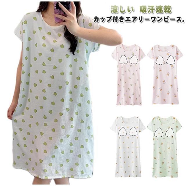 カップ付き 涼しい 吸汗速乾 パット付き 寝間着 ルームワンピース カップ付き レディース 薄手 湯上がり ワンピース 可愛い ネグリジェ 大きいサイズ 柔らかい 軽い 湯冷め防止 春夏