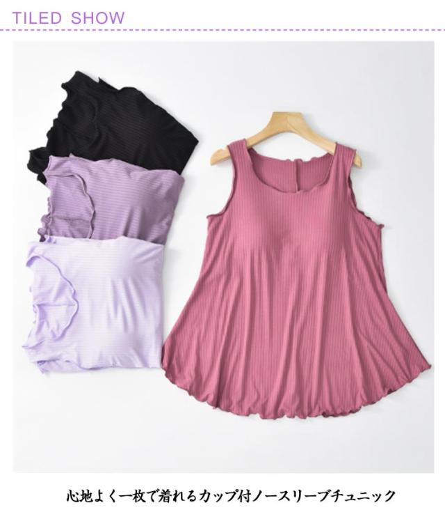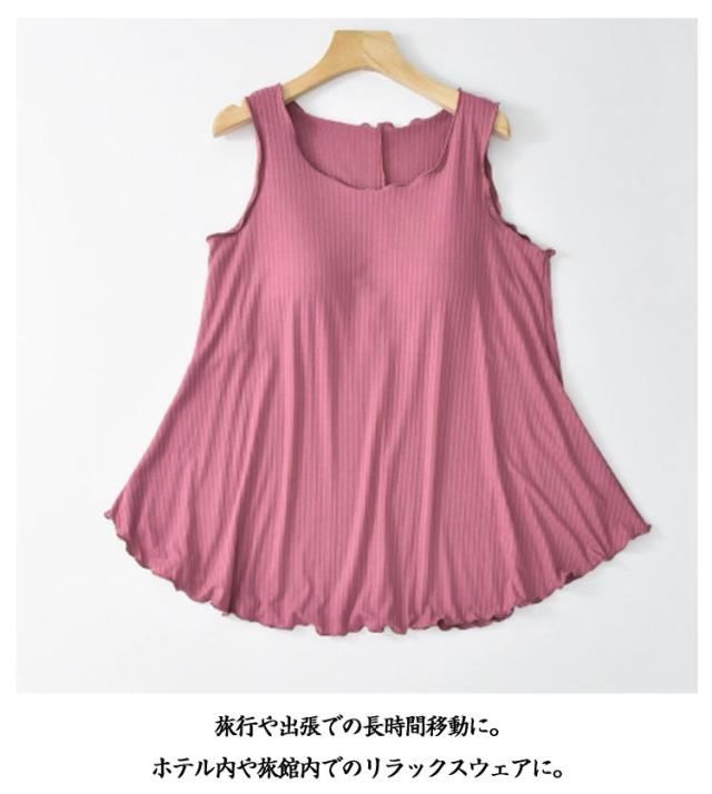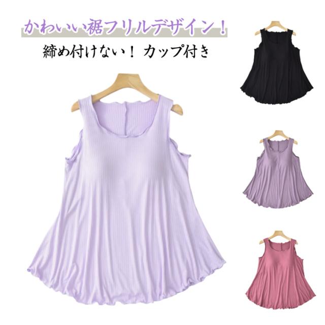 ルームウェア カップ付き 大きいサイズ 部屋着 アンダーゴムなし タンクトップ 大きいサイズ レディース トップス チュニック ゆったり フレア裾 フリル カップ付 インナー 春 夏 Aライン シンプル