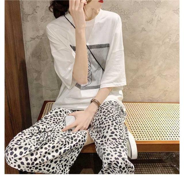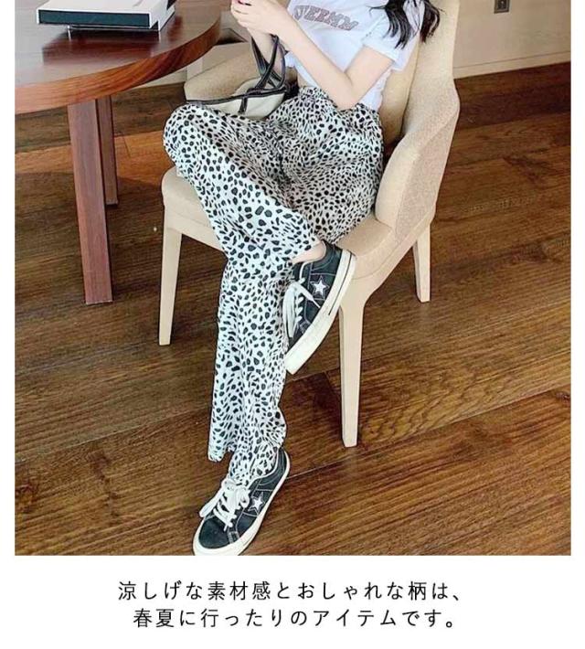 イージーパンツ 夏用ひんやりパンツ レディース ワイドパンツ リラックスパンツ ワイドパンツ ストレート ヒョウ柄 ワイド ワイドパンツ ボトムス プリントイージーパンツ ひんやり 総柄 柄パンツ 接触冷感 ボトムス 涼しい 薄手 夏用 ストレート 春服 プリント 夏服