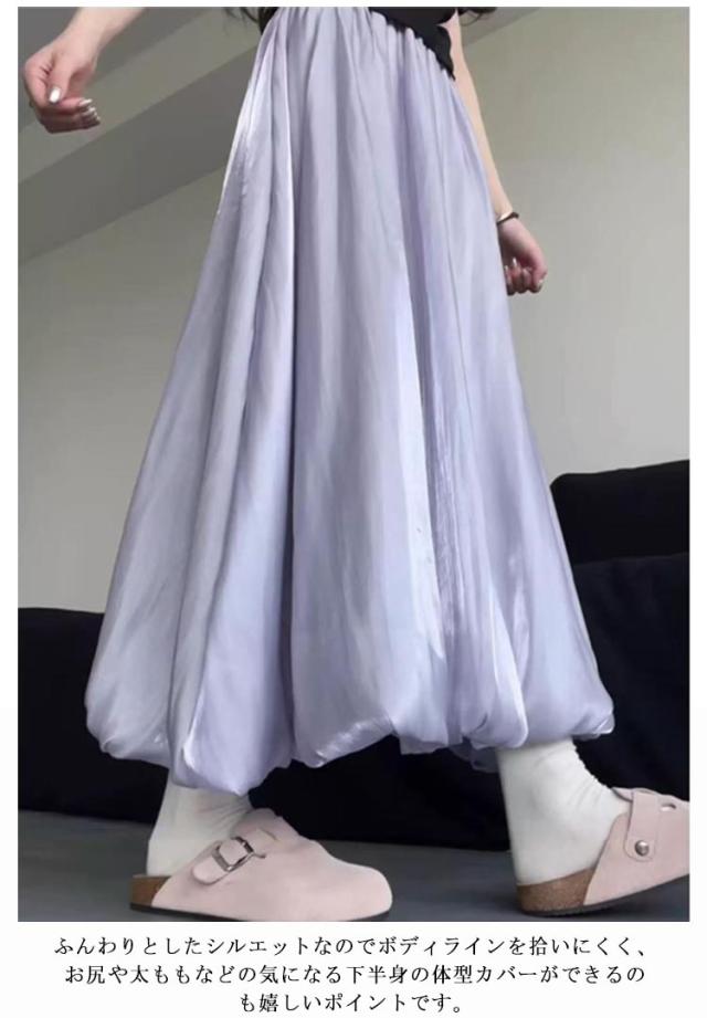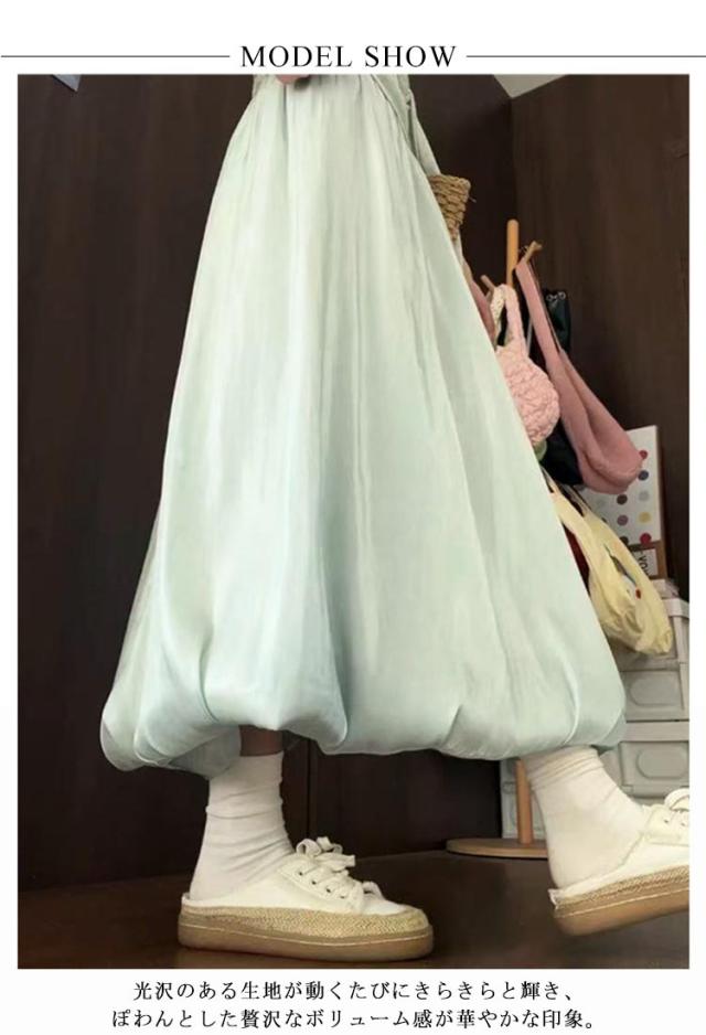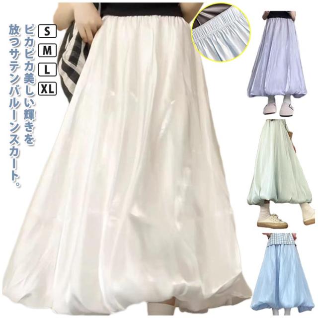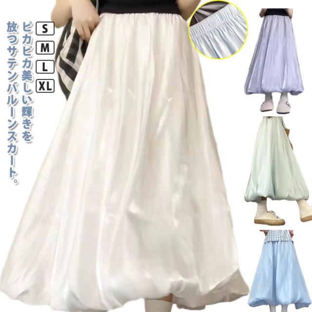 光沢 サテンバルーンスカート フレア マキシスカート サテンバルーンスカート レディース バルーンスカート ロングスカート 可愛い バルーン フレアスカート パーティー お呼ばれ服 送料無料 上品