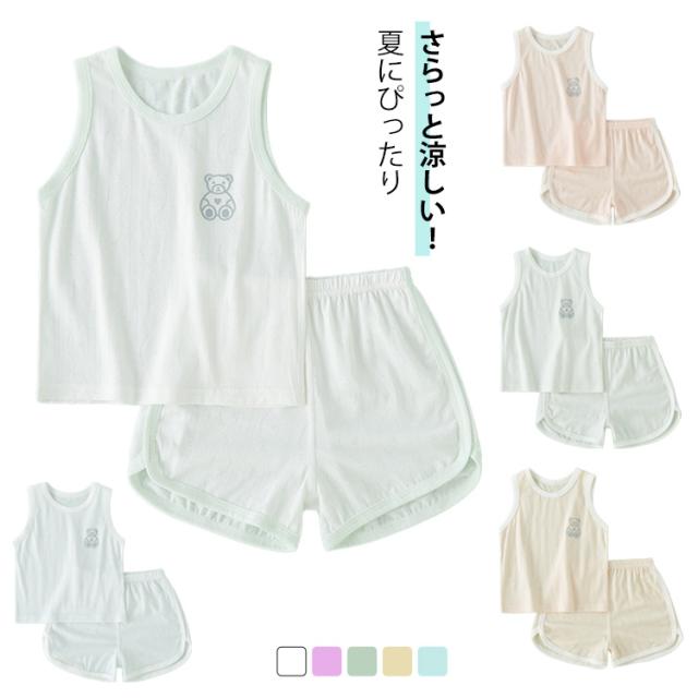 ショートパンツ ベビー パジャマ 赤ちゃん ベビー ルームウェア パンツ トップス タンクトップ ナイトウェア 上下セット 接触冷感 子供 女の子 セットアップ こども キッズ 子供 子ども くすみカラー 部屋着 薄手 涼しい