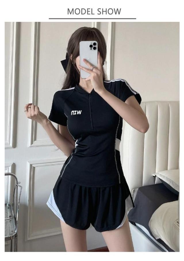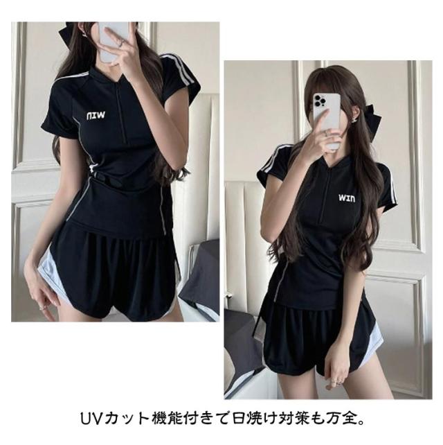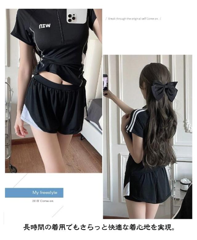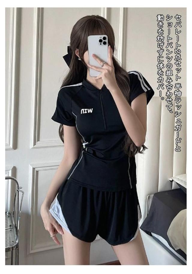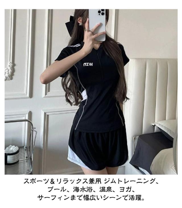 半袖 レディース 中学生 フィットネス水着 ママ水着 水着 セパレート 体型カバー スポーティー 半袖 高校生 女子 大人 体型カバー水着 2点セット 可愛い お洒落 20代 30代 40代 吸汗速乾ラッシュガード 通気性