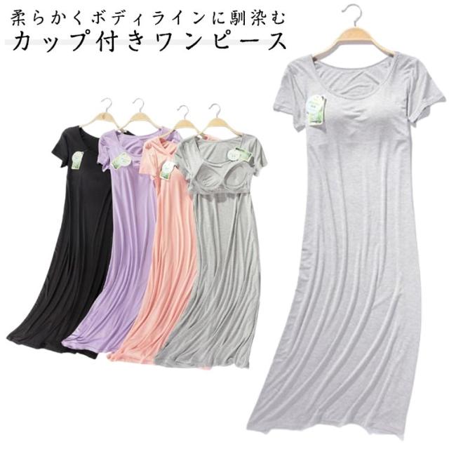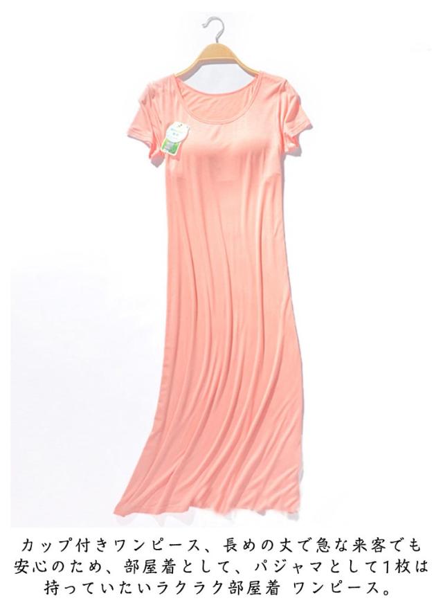 カップ付きワンピース カップ付き 無地 春 夏 可愛い ワンピース ロング丈 パジャマ ルームウェア ルームワンピース ナイトウェア 半袖 レディース 部屋着 柔らかい ゆったり ルームウェア シンプル 秋 外出 母の日 ワンピース 誕生日 ギフト