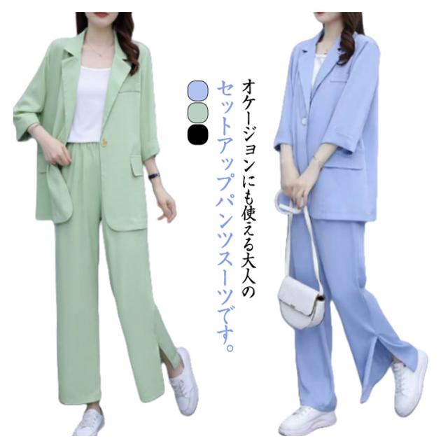 リクルートスーツ ワイドパンツ インナー付き スーツ 入学式 ビジネススーツ セットアップ 7分袖 テーラードジャケット レディース 3点セット パンツスーツ フォーマルスーツ セレモニースーツ 通勤 上品 面接 オフィス パンツスーツ 春 夏