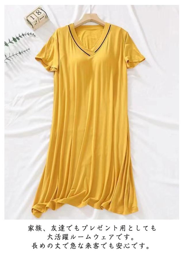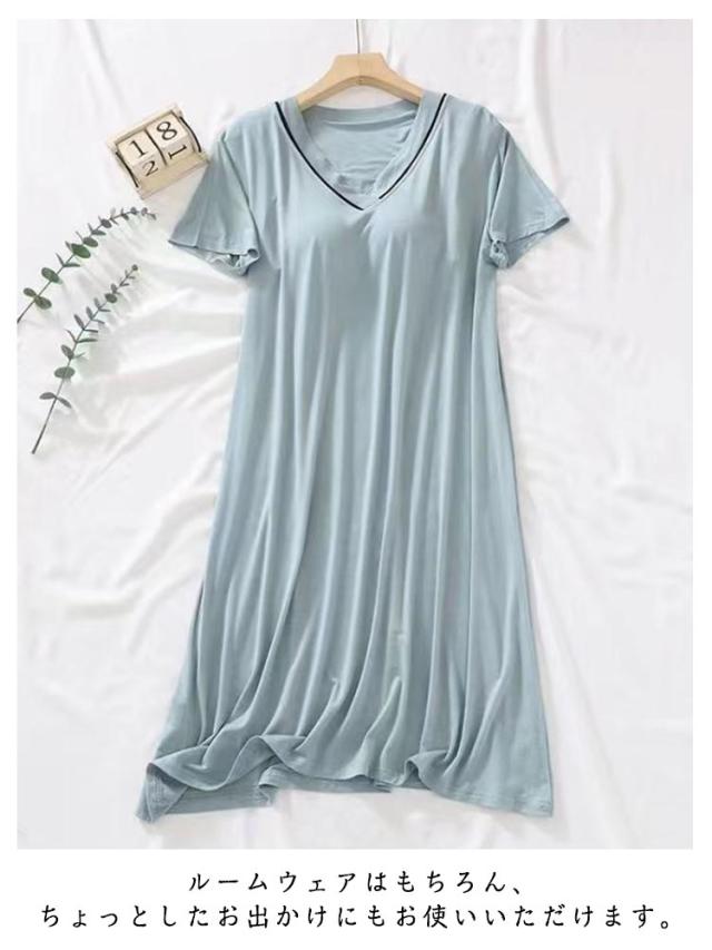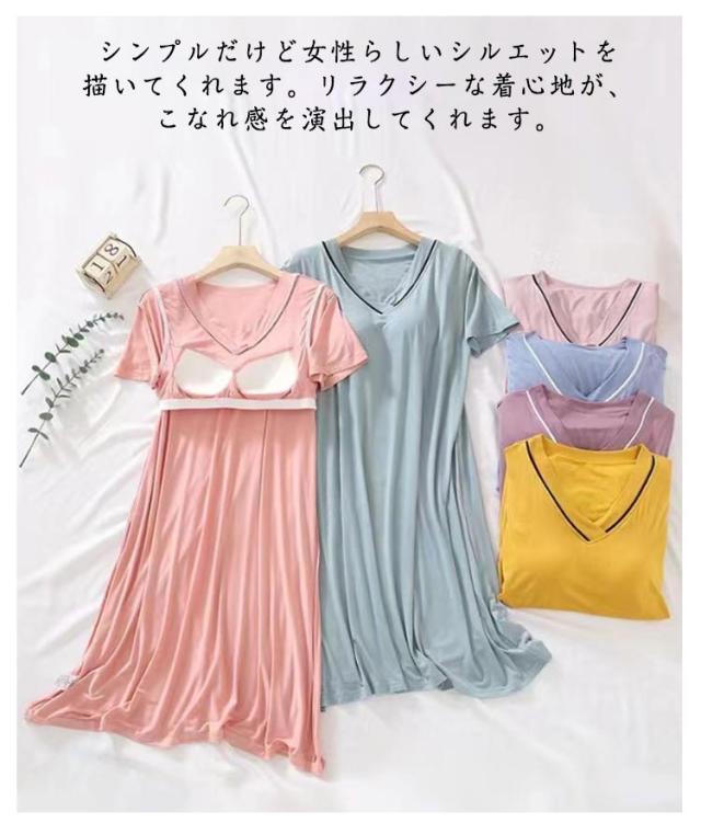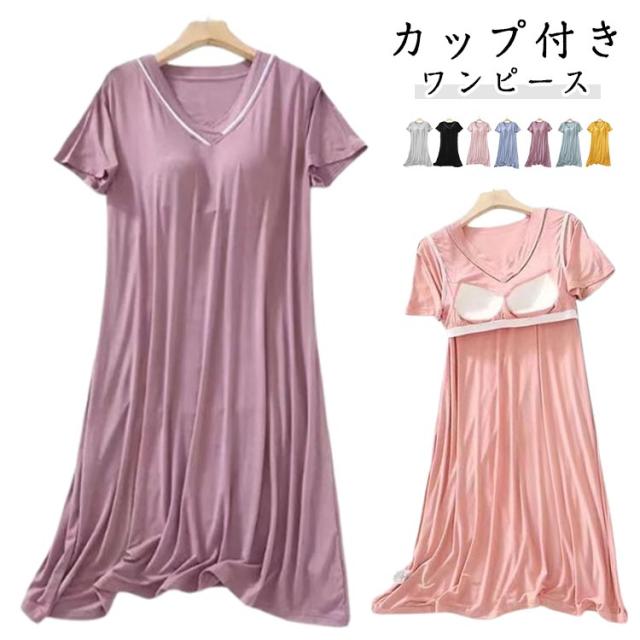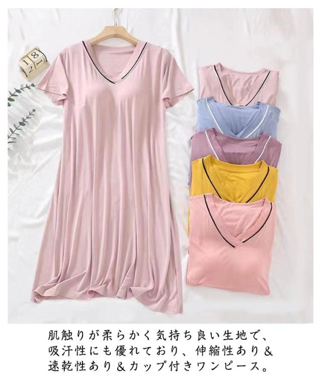 涼しい 半袖 涼感ワンピース 春 ルームウェア Vネック カップ付き カップ付き レディース 薄手 寝巻き 夏 パッド付き ルームワンピース 可愛い パジャマ ゆったり 大きいサイズ 部屋着 寝間着 夏用 ワンピース リラックスウェア ギフト プレゼント おしゃれ