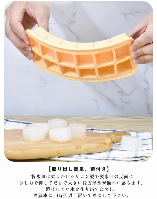 | 【安全性】食品級シリコンを採用し、食べ物や飲み物に直接触れることができます。 【取り出し簡単、蓋付き】製氷皿は柔らかいシリコン製で製氷皿の反面に少し力で押してだけで大きい長方形氷が簡単に落ちます。溶けにくい氷を作り出すために、冷蔵庫に10時間以上置いて冷凍して下さい。製氷皿は専用蓋が付属しており、製氷時に水が溢れないようにすることができます。密閉性に優れているため、冷蔵庫に置いてでも他の味と混ざるのを防ぐことができます。複数のアイストレーを積み重ねてスペースを節約できます。食洗機で洗う可能。80%くらいまで水を入れるのがおすすめ、簡単に取り出し 【幅広い用途】長方形氷をカクテル、オレンジジュース、ウイスキーなどの飲み物に入れて、冷たい飲み物を楽しむことができます。カキ氷店、家庭用、バー、レストラン、飲食店にも適用。 | |
