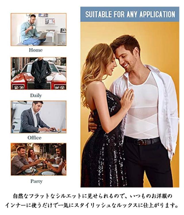 | 【加圧シャツ】【S〜4XL】 補正インナーとしても、スポーツ時の加圧シャツとしても、姿勢を綺麗に見せる下着としてもマルチに使えるインナーアイテムです。 薄めのTシャツやニットを着用した際の乳首浮き、透けをパワーネットがしっかりガード! 自然なフラットなシルエットに見せられるので、いつものお洋服のインナーに使うだけで一気にスタイリッシュなルックスに仕上がります。 【下腹部も引き締める】 エックスラインのストレッチ補正ベルトが気になる下腹部もしっかりと抑え込みます。背中側にもクロスラインの補正ベルトを施し 同時に猫背も補正。 きれいな姿勢を保ち、自信あふれる印象に。毎日着用する事で正しい姿勢も身につきます。 【加圧トレーニングにも】 しっかりと圧がかかるので効果的なトレーニングが可能。 ゴルフやジム、ジョギングの際にも胸や贅肉が揺れるのを防ぐため快適にワークアウトを楽しむことができます。 | |