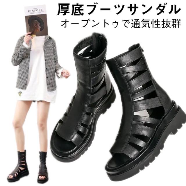 サンダル シューズ 厚底サンダル 夏用 サマーブーツ ブーツサンダル オープントゥ ブーツサンダル 厚底 レディース 美脚 滑りにくい おしゃれ
