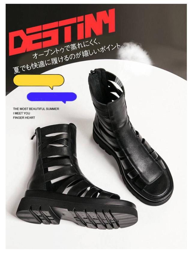 | 2025年夏注目の新作ブーツサンダルが登場! ローマ風デザインに加え、柔らかい厚ソールでしっかり身長アップ&脚長効果。 オープントゥで蒸れにくく、夏でも快適に履けるのが嬉しいポイント。 通学やお出かけ、カジュアルコーデにもぴったり。日常使いに最適な万能サンダルです。 | |