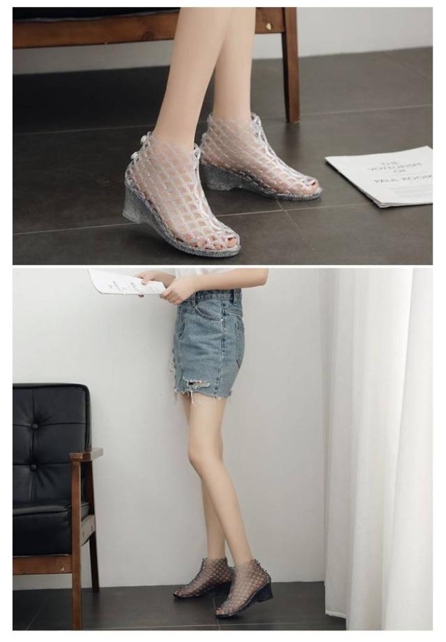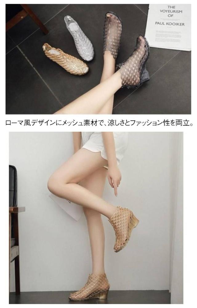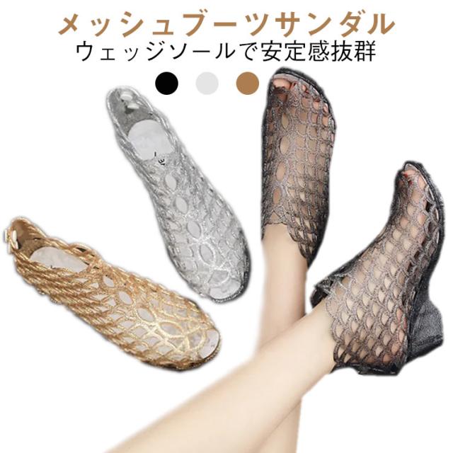 ウェッジソールサンダル ヒールサンダル サンダル メッシュサンダル レディース 透け感 美脚 サマーブーツ 肌見せ ウェッジソール ウェッジソールサンダル おしゃれ かわいい
