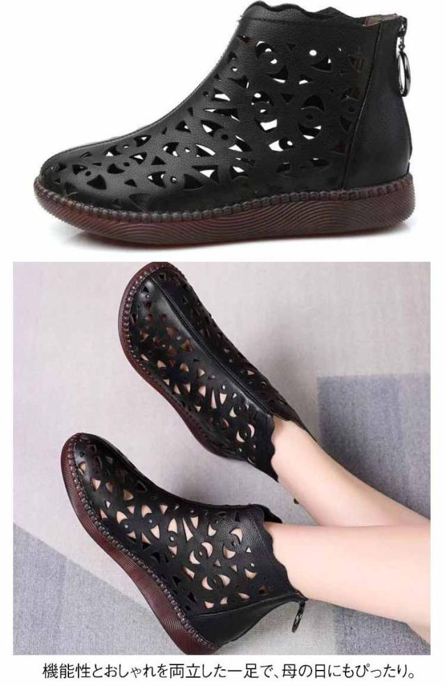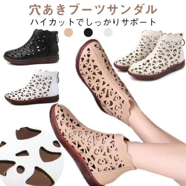 サンダル 母の日 サマーブーツ 夏靴 穴あきブーツ ぺたんこ サマーブーツ レディース 靴 女性用 軽量 歩きやすい 春夏 30代 40代