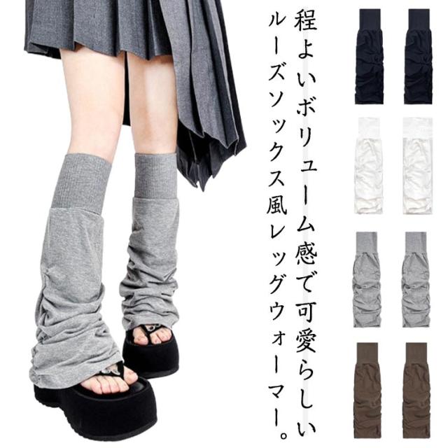 レッグカバー くしゅくしゅ ブーツカット ワイドレッグウォーマー レディース ルーズソックス くしゅくしゅ 美脚 ハイソックス ロング 足首 ルーズソックス 薄手 美脚 可愛い ふわふわ スタイリッシュ ブラック ホワイト グレー