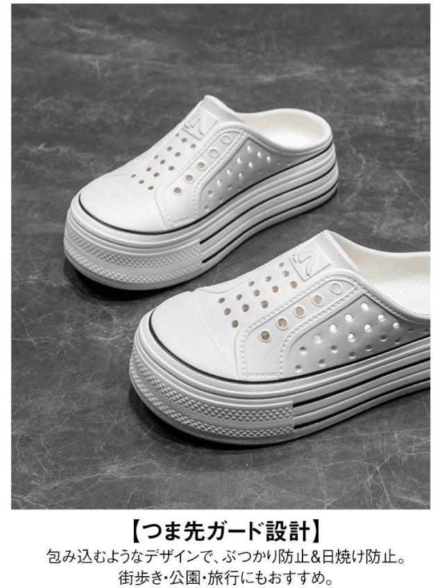 | 【軽量×クッション性】 高品質EVA素材使用でとにかく軽い。足裏にフィットし、長時間歩いても疲れにくい! 【5cm厚底で脚長効果】 自然にスタイルアップ!低身長さんにも嬉しい設計で、カジュアルにもきれいめにも合わせやすい◎ 【つま先ガード設計】 包み込むようなデザインで、ぶつかり防止&日焼け防止。街歩き・公園・旅行にもおすすめ。 【通気性◎】 全面に施された通気穴でムレにくく、暑い夏でも足元がさらっと快適。 【滑り止めアウトソール】 靴底にしっかりグリップ力のあるパターンを採用。濡れた地面でも安心。 【多用途スタイル】 パンツ、スカート、ワンピース、なんでも相性抜群!お出かけ、通勤、ビーチにもOK! | |