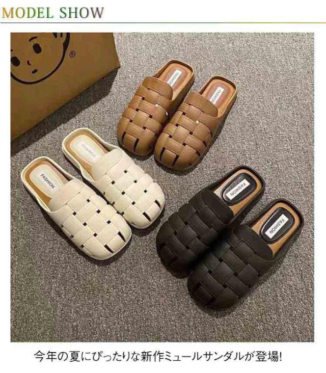 ミュールサンダル スリッパ サンダル レディース つま先あり ミュール 夏用 ミュールサンダル レディース スリッパサンダル 外履き 編み上げ