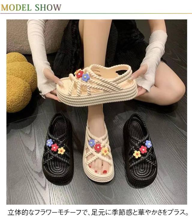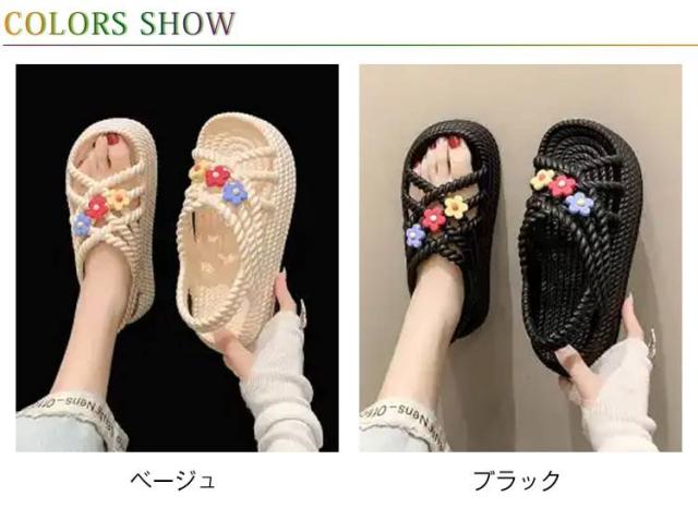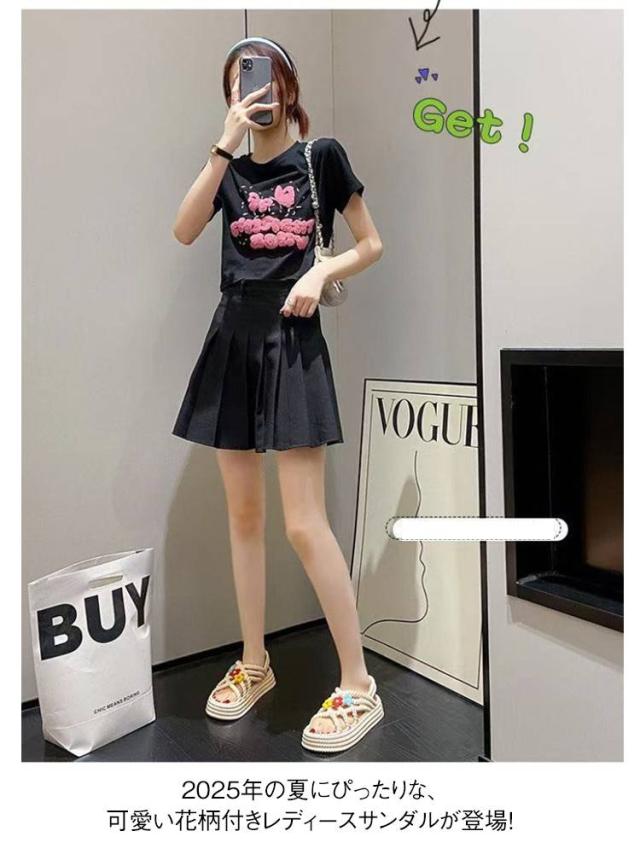 | 2025年の夏にぴったりな、可愛い花柄付きレディースサンダルが登場! 立体的なフラワーモチーフで、足元に季節感と華やかさをプラス。 柔らかくて厚みのあるソールは足への負担を軽減し、長時間の使用でも疲れにくい設計です。 防滑仕様のアウトソールで濡れた路面でも安心♪ 軽くて持ち運びにも便利なので、ビーチ・旅行・ちょっとしたお出かけにもおすすめの一足です。 | |