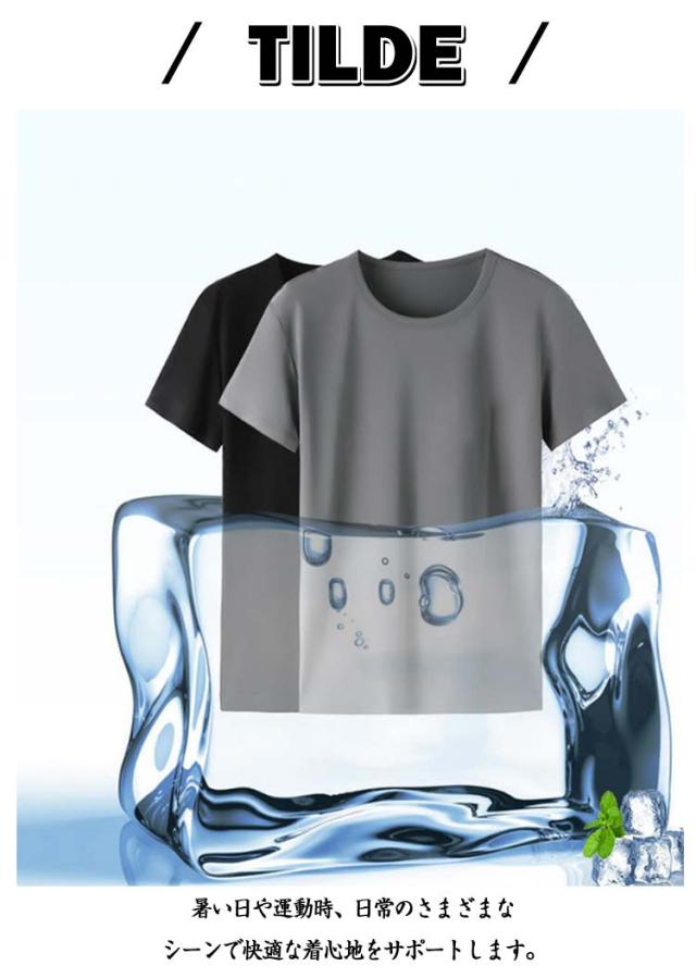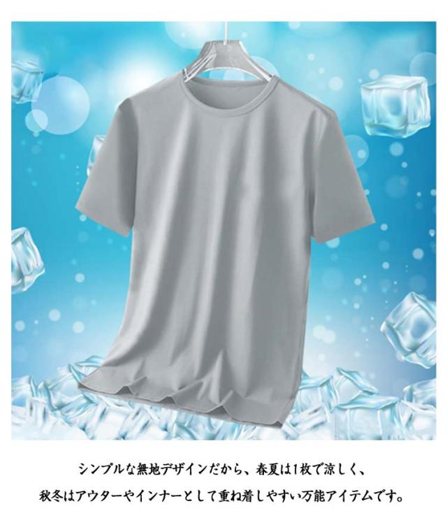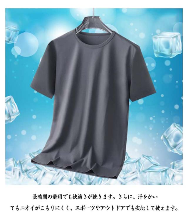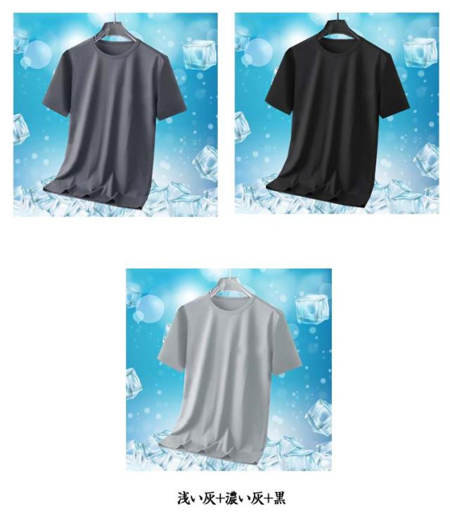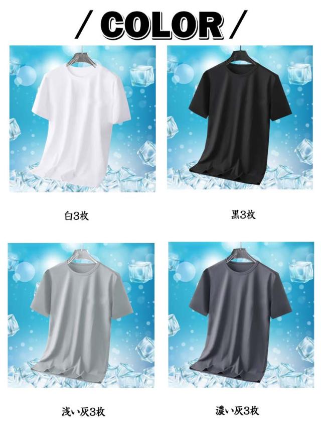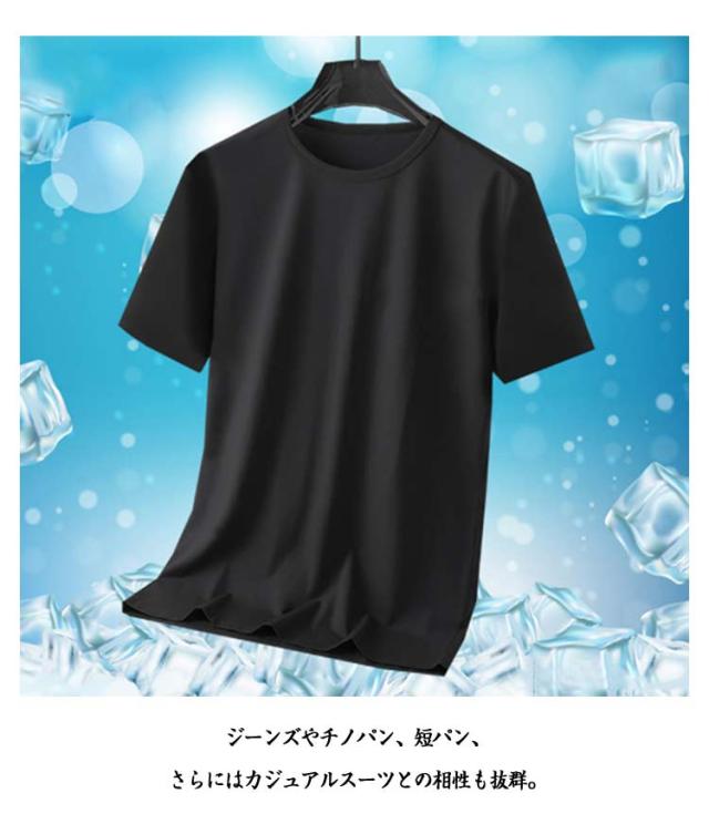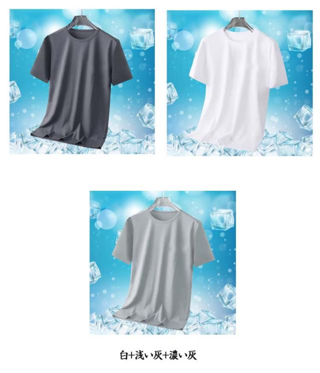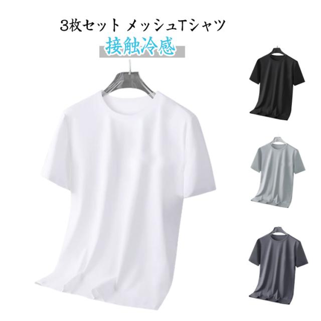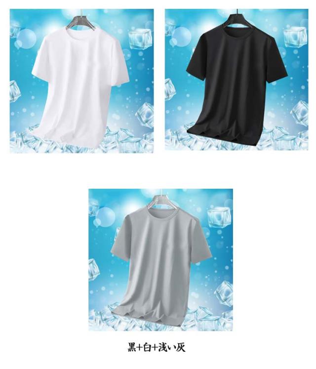 半袖Tシャツ 通気性 無地 メンズ 夏 涼しい 薄手 大きいサイズ トップス 【3枚セット】アイスシルク 速乾 接触冷感 クルーネック カットソー インナー 【3枚セット】アイスシルク クール 白 黒 丸首 ドライ ティーシャツ トレーニングウェア