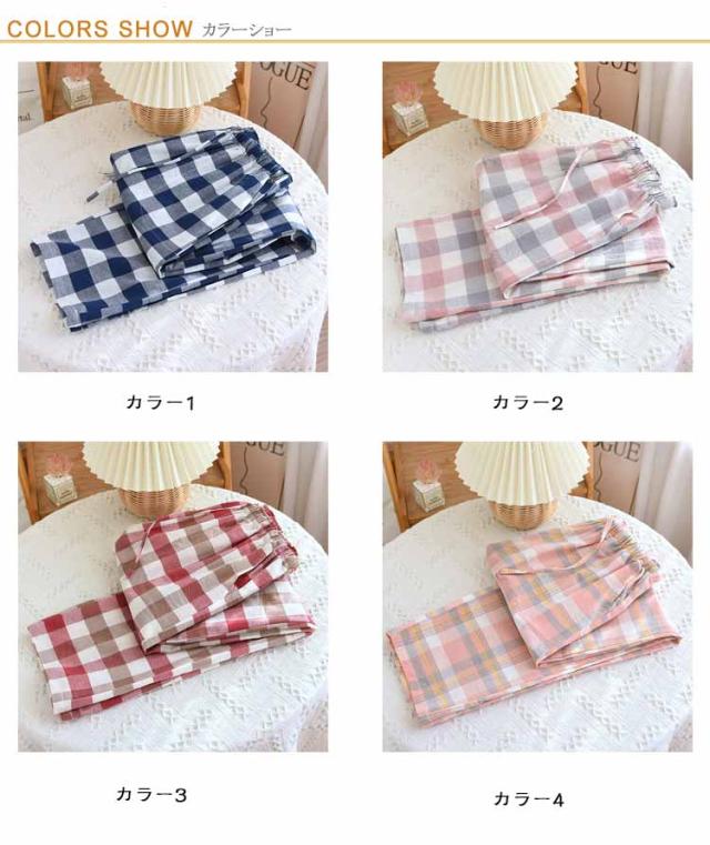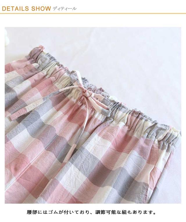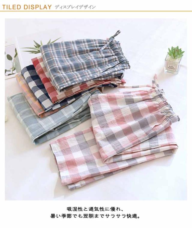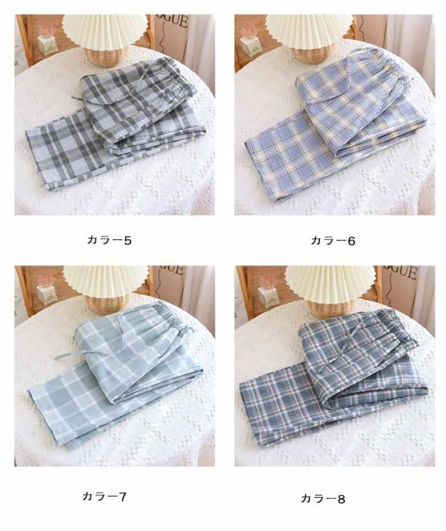 ルームパンツ レディース 春秋 薄手 ルームパンツ 夏服 チェック柄 ロング ゆったり 可愛い ストレート 長ズボン ウエストゴム ルームウェア カジュアル 部屋着 寝巻き ボトムス ポケット付き ワンマイルウェア