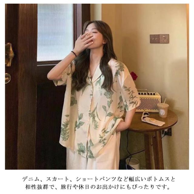 アロハシャツ 半袖シャツ 夏服 アロハシャツ 開襟シャツ リーフ柄 レディース 薄手シャツ リゾートシャツ 大きいサイズ おしゃれ トップス