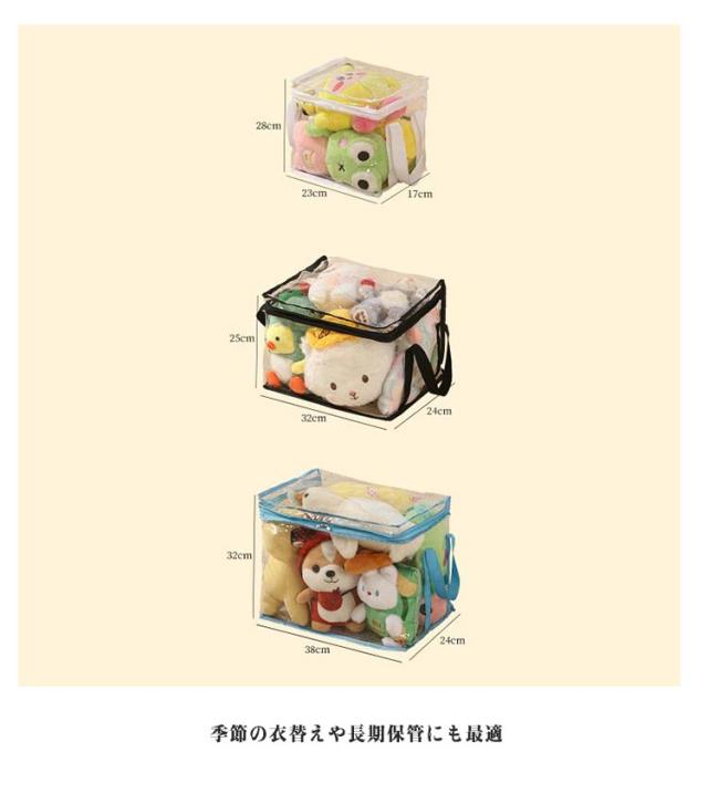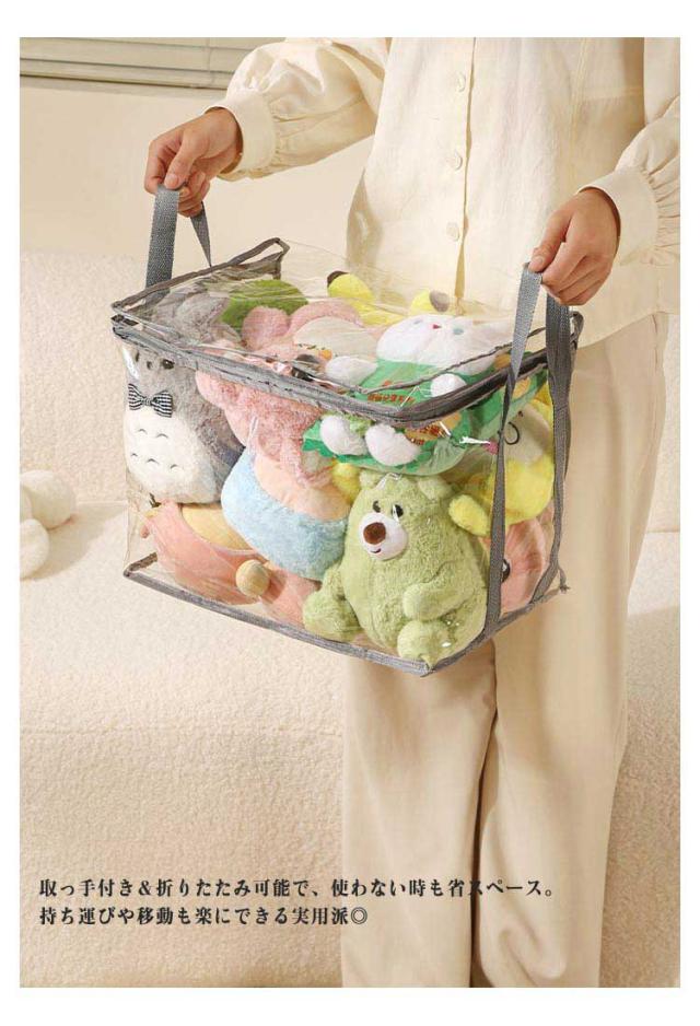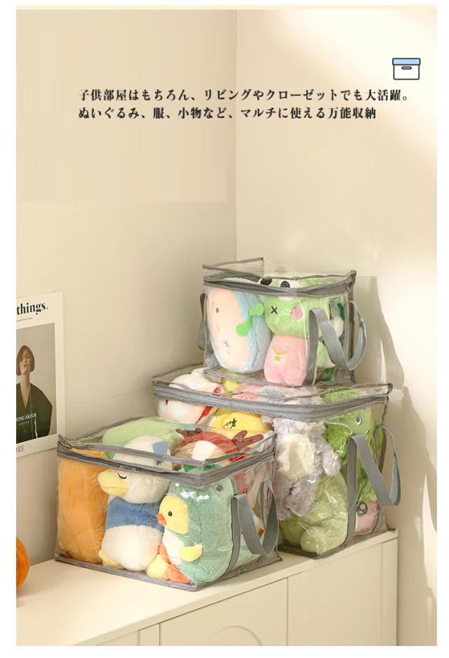 | 毛布・ぬいぐるみ・おもちゃ・衣類など、なんでもまとめて収納できる大容量タイプ! サイズたっぷりで、家中の散らかりをスッキリ解消 透明デザインで、中身が一目で分かりやすい。 毎回探さずパッと見つかるから、整理整頓もラクラク 取っ手付き&折りたたみ可能で、使わない時も省スペース。 持ち運びや移動も楽にできる実用派◎ 防水・防湿素材で、ホコリや湿気から中身をしっかり守る。 季節の衣替えや長期保管にも最適 ダブルファスナー仕様で、開閉スムーズ。 上からも横からも取り出しやすく、忙しいママにも嬉しい設計 子供部屋はもちろん、リビングやクローゼットでも大活躍。 ぬいぐるみ、服、小物など、マルチに使える万能収納 | |