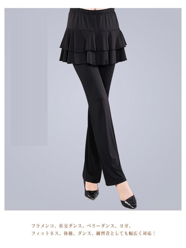 ダンスパンツ レギンス スカート付き パンツ ベリーダンス ダンス衣装 ヨガ レディース ジャージ 体型カバー ミニスカート 社交ダンス フィットネス フラメンコ ブーツカット スカパン 美脚パンツ 衣装 ヨガウェア ヨガパンツ レッスンパンツ ダンスパンツ ストレッチ