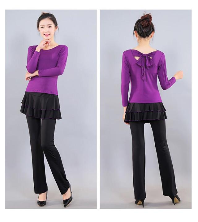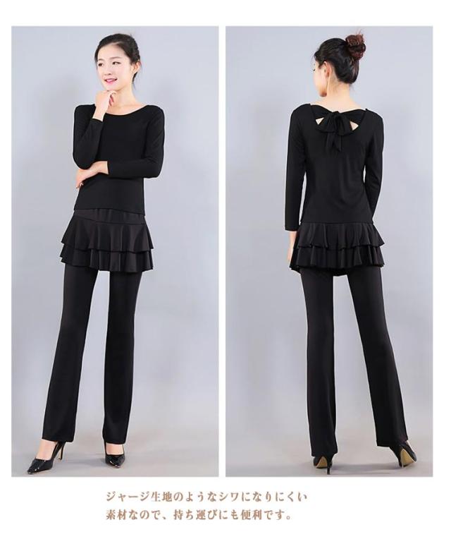 | 美脚ライン!スカートつきパンツ ダンス衣装。 ストレッチがあり着心地抜群の美脚スカートつきパンツです。 ジャージ生地のようなシワになりにくい素材なので、持ち運びにも便利です。 フラメンコ、社交ダンス、ベリーダンス、ヨガ、フィットネス、体操、ダンス、練習着としても幅広く対応! 生地は柔らかく、速乾性、伸縮性、通気性が備わり、動きやすく快適さを重視した機能性抜群ウェア。 | |