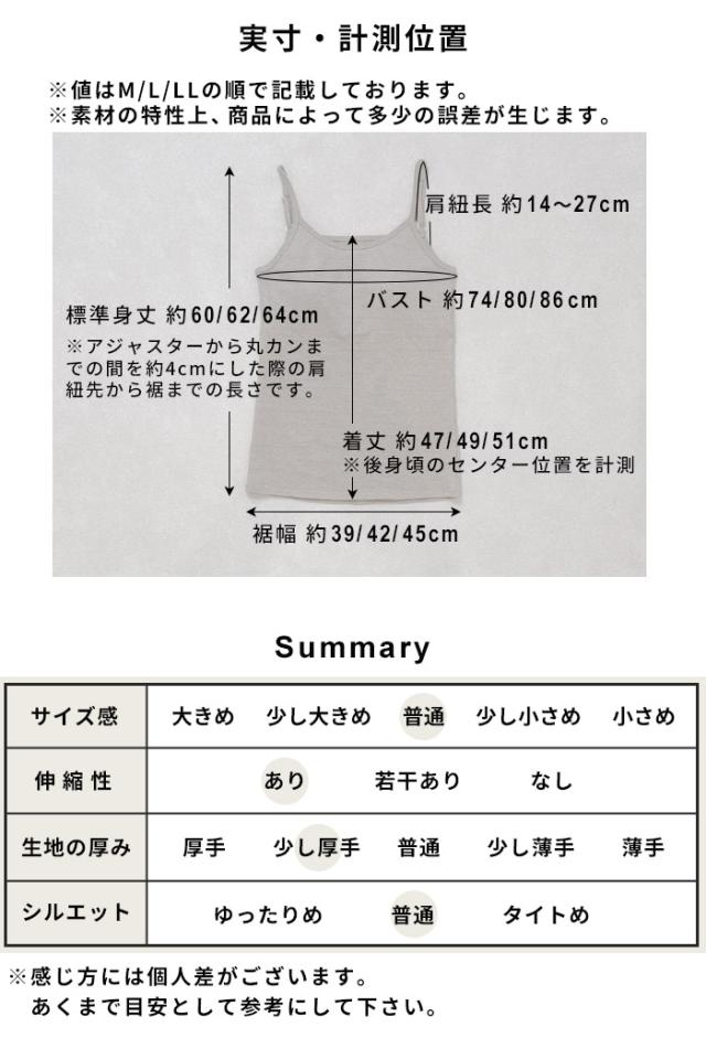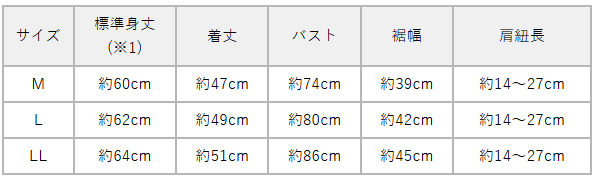 ※1 標準身丈はアジャスターから丸カンまでの間を約4cmにした際の肩紐先から裾までの長さです。サイズ計測方法は上の画像(実寸・計測方法)をご確認ください。