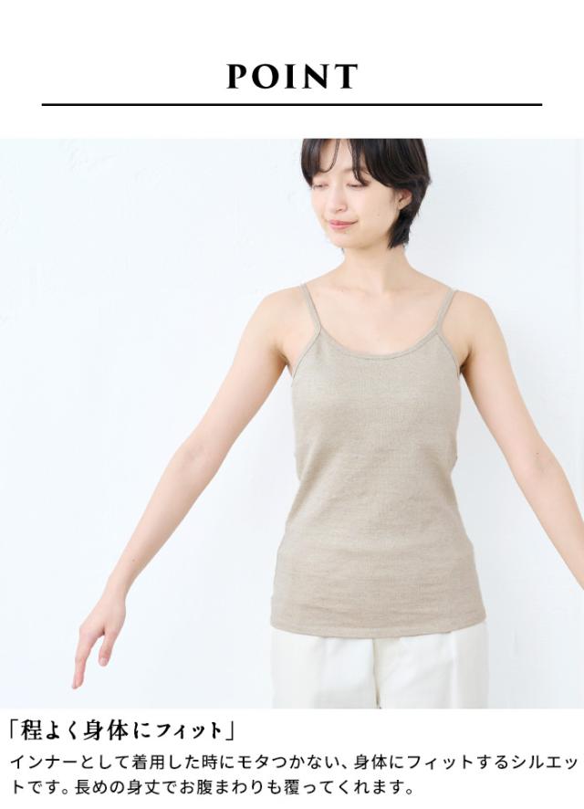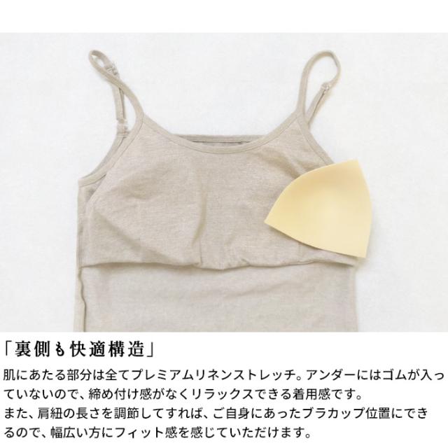 プレミアムリネン ストレッチ カップ付きキャミソール 日本製 / キャミソール カップ付き インナー アンダーゴムなし リネン 40代 50代 60代 リネンコットン 麻 綿 パッド付 吸湿 速乾 抗菌 下着 通気性 ブラトップ ブラキャミ 締め付けない 吸汗速乾 肌着