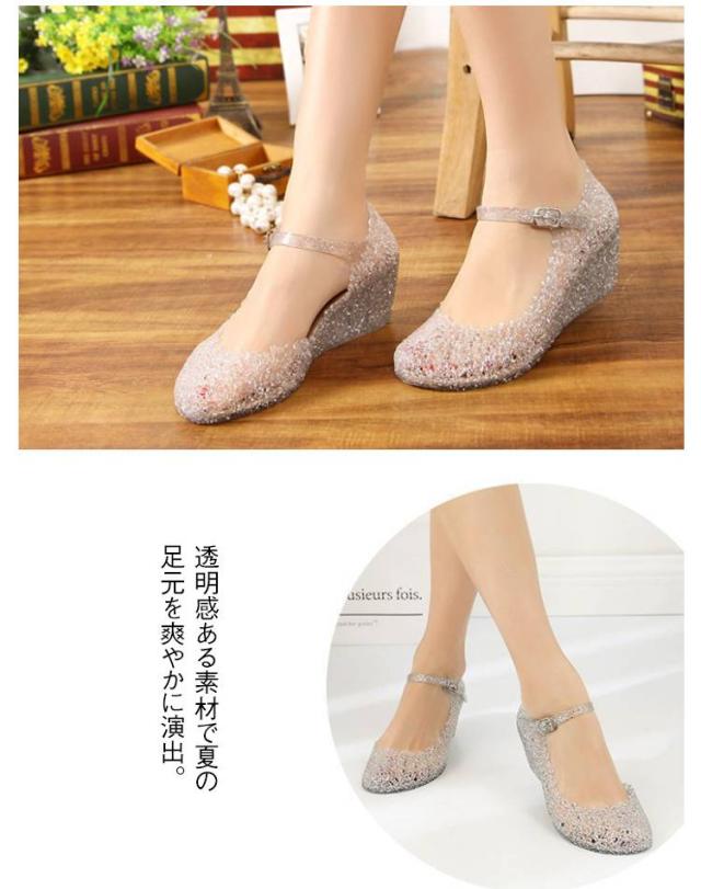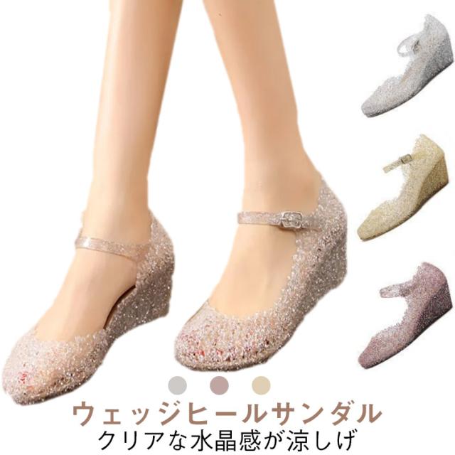 ヒール ウェッジサンダル ウェッジサンダル レディース サンダル 厚底 キラキラ ウエッジソール 歩きやすい クリア 疲れない 夏 ビーチサンダル ストラップ