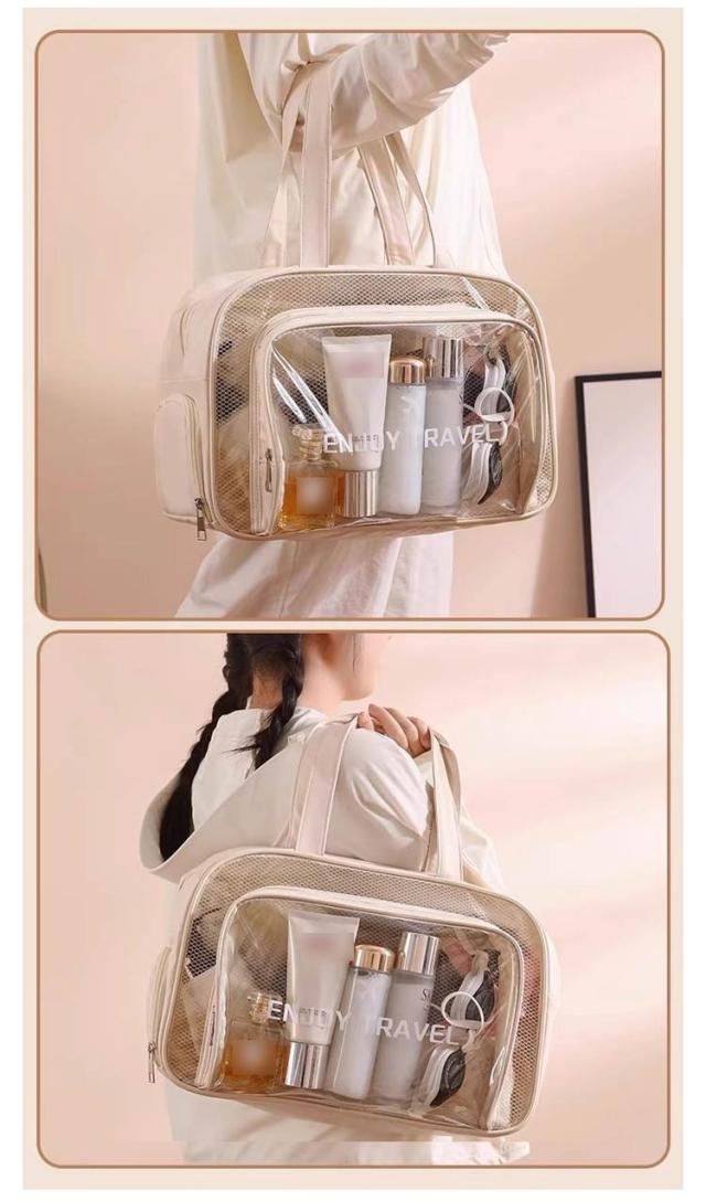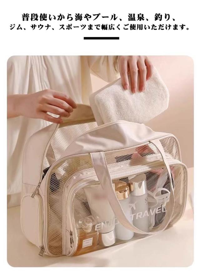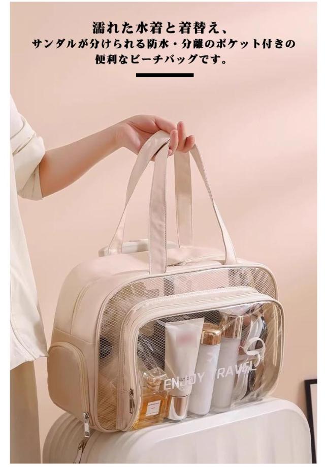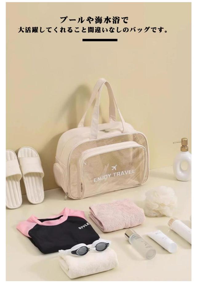 | 透明感のあるクリア素材がトレンド感満載のクリアトートバッグ。濡れた水着と着替え、サンダルが分けられる防水・分離のポケット付きの便利なビーチバッグです。 プールや海水浴で大活躍してくれること間違いなしのバッグです。 たっぷりのマチと大きめのサイズ感がとっても使いやすい! 強靭・軽量を両立。また、撥水性も持ち合わせています。 普段使いから海やプール、温泉、釣り、ジム、サウナ、スポーツまで幅広くご使用いただけます。 | |