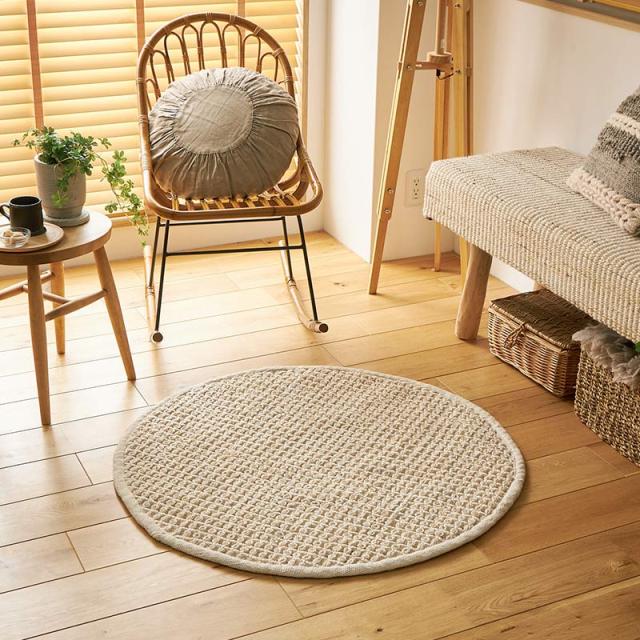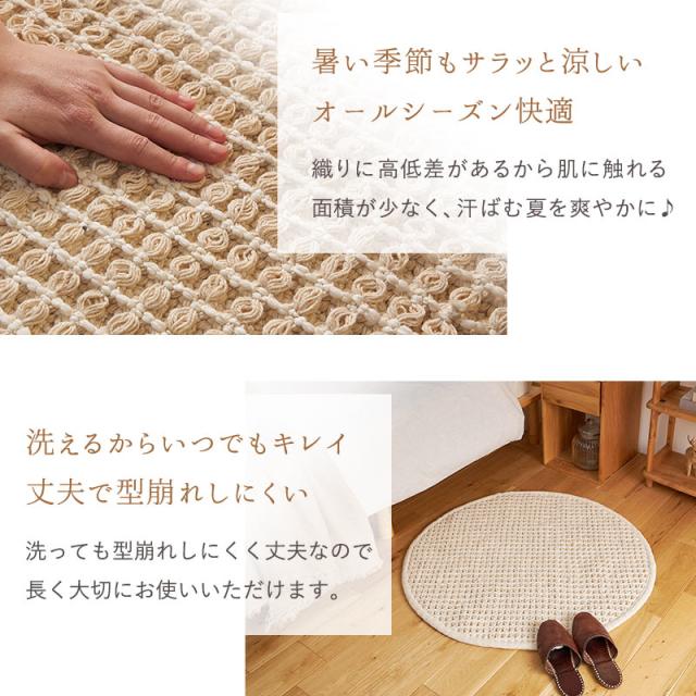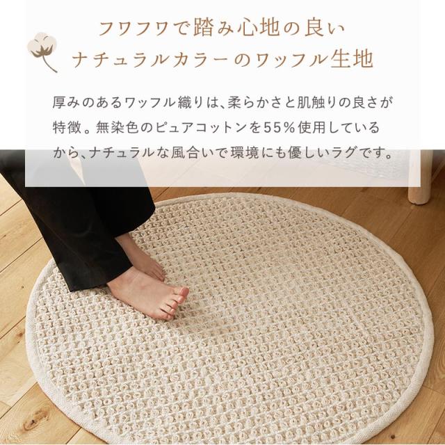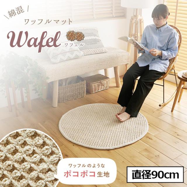 【ホットカーペット/床暖房対応】ラグ ラグマット 円形 直径90cm 綿混 ワッフルマット Wafel(ワフェル) カーペット 丸型 おしゃれ 絨毯 ラグカーペット 洗える 夏 オールシーズン コットン リビング