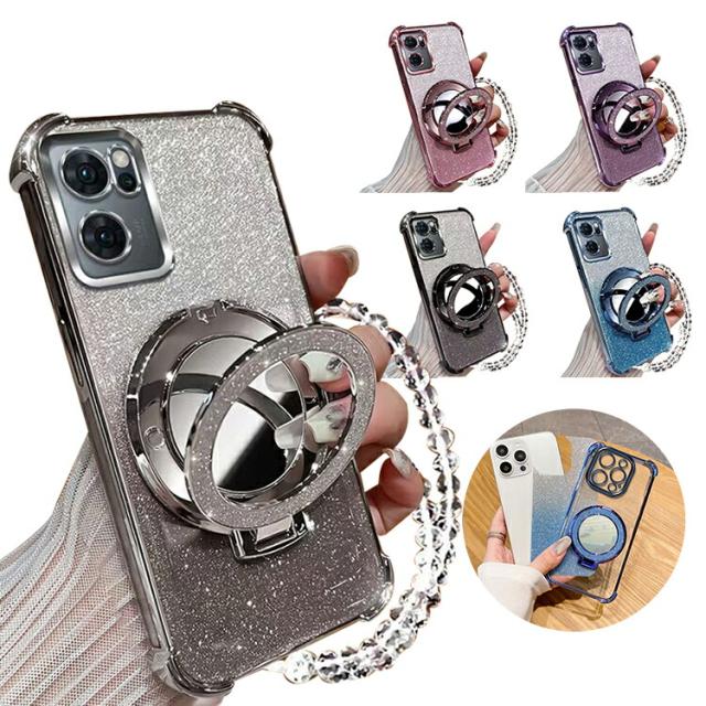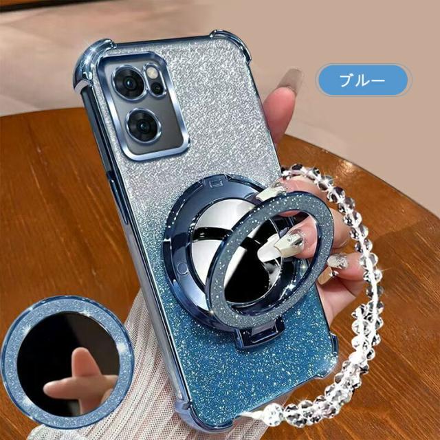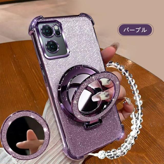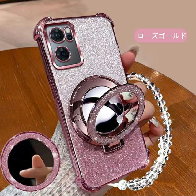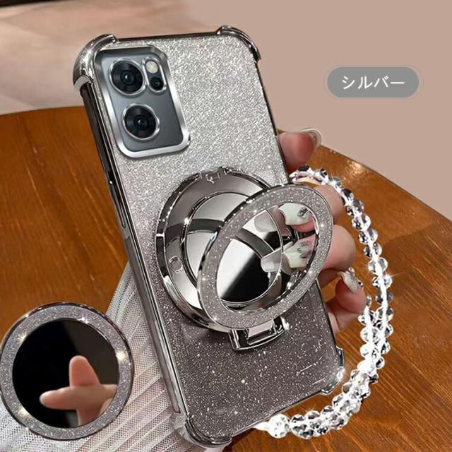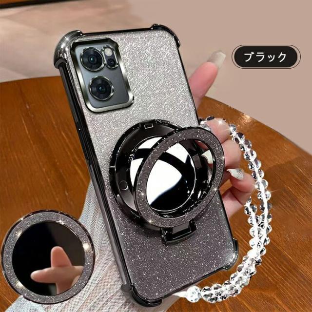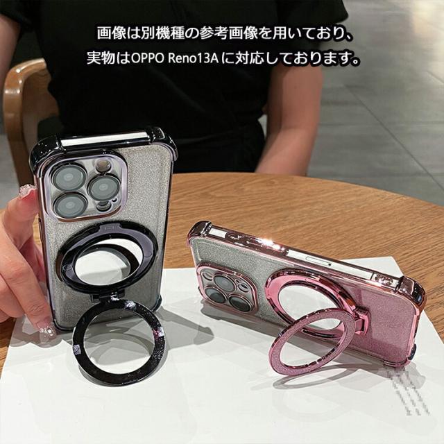 OPPO Reno13 A クリア ケース reno 13a カバー クリア 透明 ストラップ付き メッキ TPU ソフトケース 分離型スマホリング付き ミラー付き スタンド機能 角 保護 コーナーバンパー ストラップ穴 グリッター きらきら オッポ リノ13 A グリッター グおしゃれ