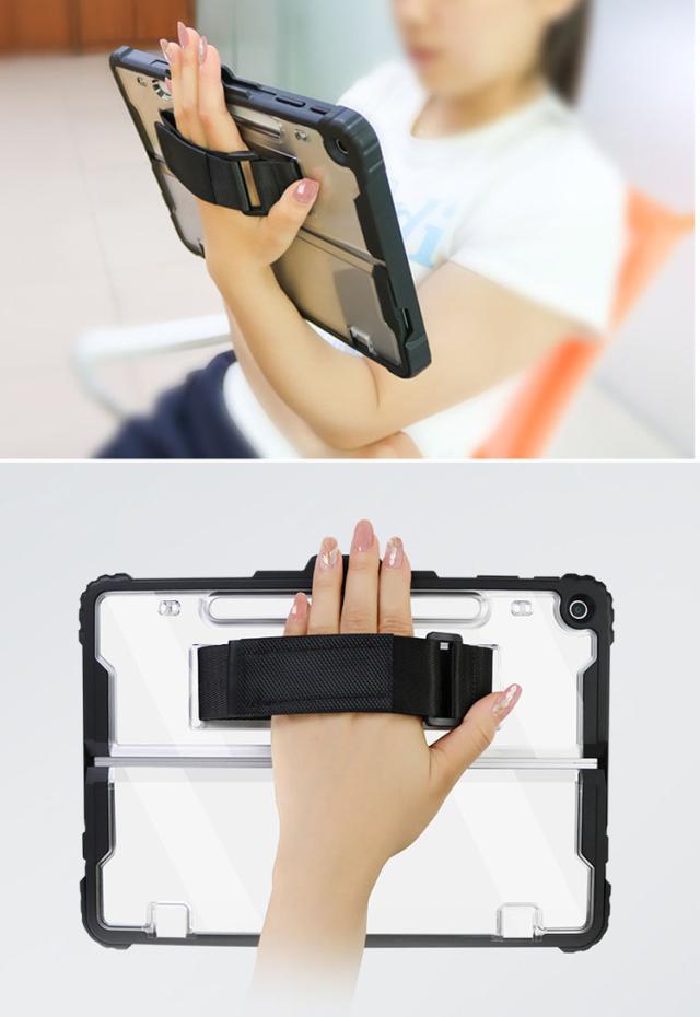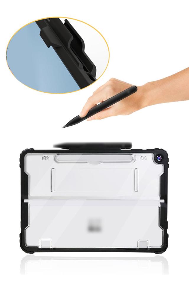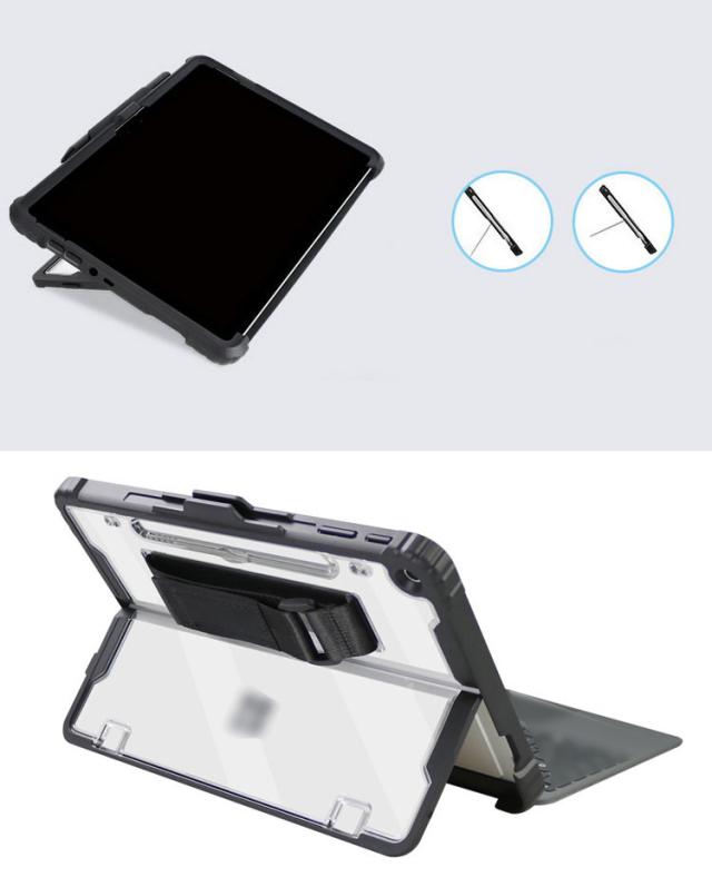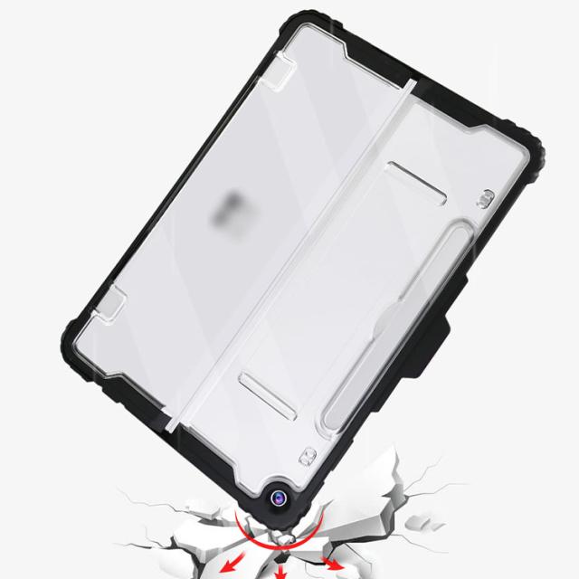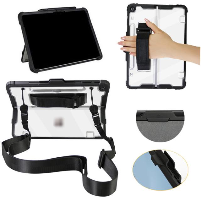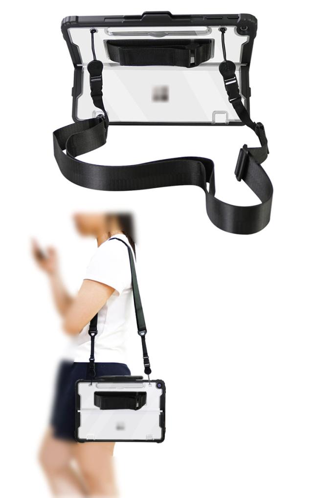 Surface Pro ケース 12インチ 耐衝撃 クリア カバー サーフェス プロ 12インチ 2重構造 おすすめ クリアケース/カバー TPU 片手持ち ペンホルダー付き ショルダーベルト付き スタンド機能 衝撃吸収 取っ手 持ち手 片手操作 落下防止ベルト付き