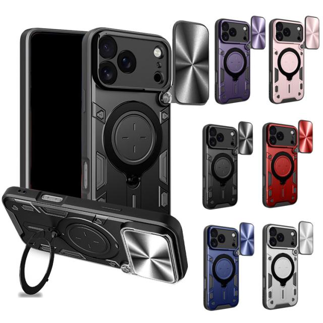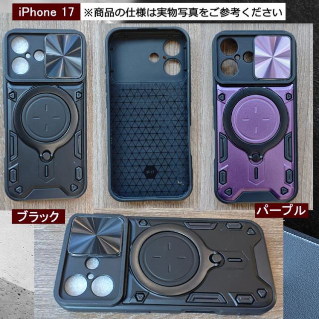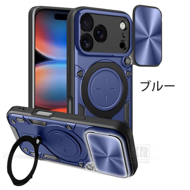iPhone17 ケース 耐衝撃 カバー スライド式カメラレンズカバー付き 一体型リング付き Qi充電 ワイヤレス充電 2重構造 スタンド機能 iPhone 17 Air/17 Pro/17 Pro Max かっこいい おしゃれ アイフォン17/17エア/17プロ/17プロマックス おすすめ スマホケース スマホカバー