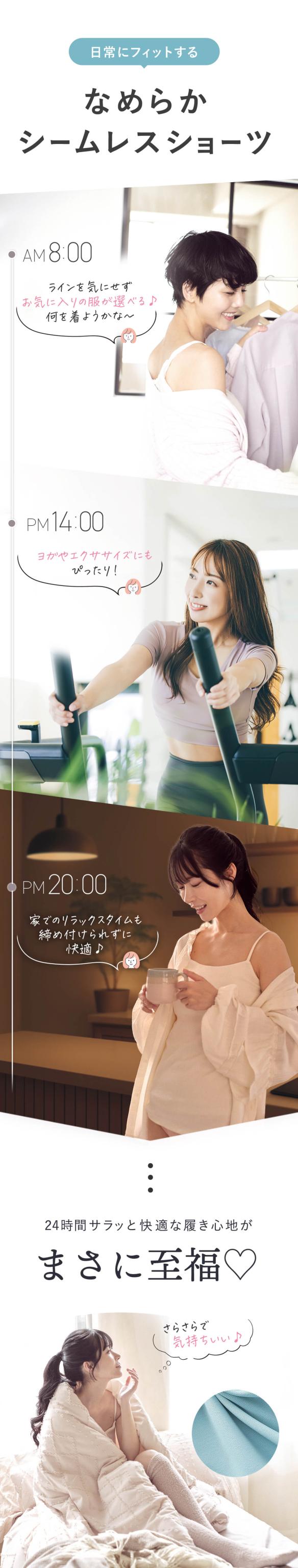 縫い目やタグがないシームレス設計によりヒップラインを美しく見せます! タイトなボトムスでもショーツのラインが響かず 後ろ姿に自信が持てます