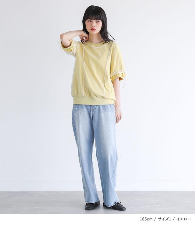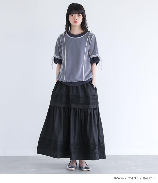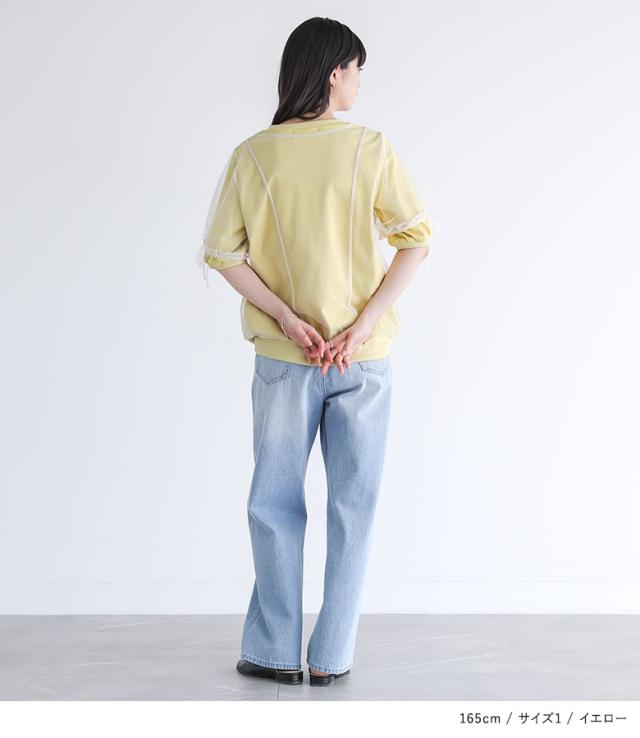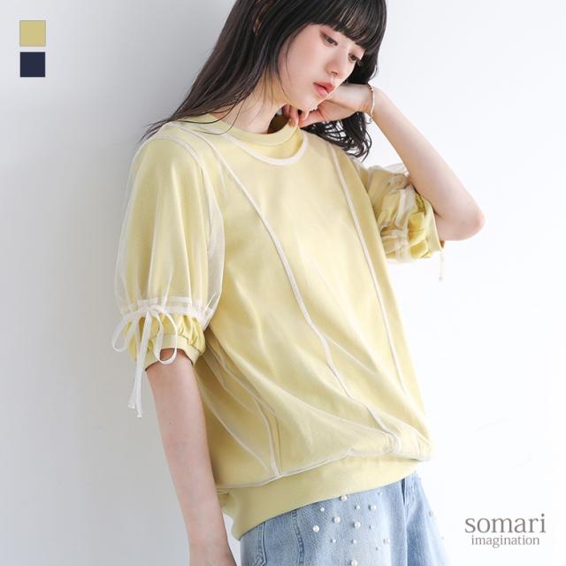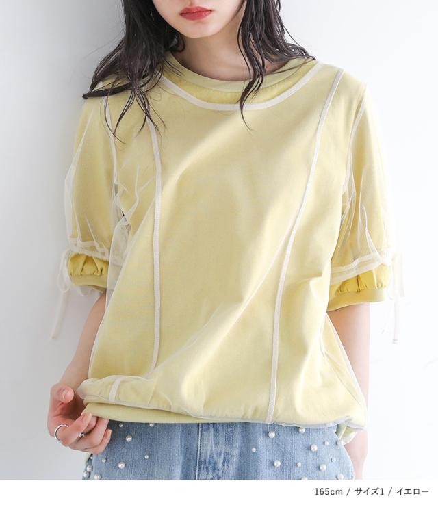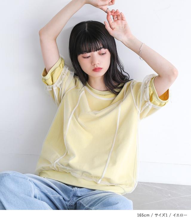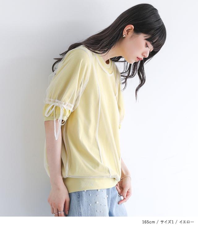 カットソー レディース トップス 半袖 Tシャツ チュール レイヤード 重ね着 ドロスト リボン ドッキング シアー 春 夏 【TP】 デザインTシャツ デザインT プルオーバー クルーネック ショート丈 ミディ丈 ミドル丈 リブ 配色 無地 綿100% コットン100% 異素材 シースルー 透け感 フェイクレイヤード おうちで洗える カジュアル レトロ クラシカル シンプル ナチュラル キレカジ フェミニン ガーリー ゆったり ゆる 楽ちん 二の腕カバー Sサイズ Mサイズ Lサイズ LLサイズ 3Lサイズ XLサイズ ぽっちゃり 体型カバー 大きいサイズ プラスサイズ 10代 20代 30代 40代 50代 60代 女子会 オフィス 通勤 通学 お買い物 お出掛け 旅行 リゾート おしゃれ お洒落 トレンド 流行 somari imagination ソマリイマジネーション 可愛い系 大人女子 大人可愛い お洒落可愛い 大人カジュアル 上品 きれいめ osharewalker オシャレウォーカー おしゃれうぉーかー イエロー 黄色 ネイビー 紺[ID]12tn0yi[somari imaginationチュールレイヤードカットソー]