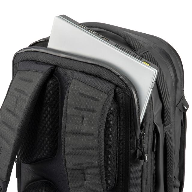 | 高多湿、蒸れへの対策を考えたラグレンティスのコンセプトモデル。 酷暑、蒸れに対応したビジネスバックパック ショルダーハーネスに通気口を設け、背面を凹凸にすることで、夏場にも快適に使用できるようアップデート。 ラグレンティスの機能性は確保したまま、背面蒸れを軽減します。 ● ベンチレーションシステム ショルダーハーネスに通気口を設け、背面の芯材に凹凸にすることで、通気性を確保した仕様。 ● 2気室荷物の仕分け収納がしやすい2気室タイプ。 ● PC収納 14.0インチノートPCが収納可能。参考収納寸法(W330×H240×D25mm) ● ユニバーサルハーネス 実測に基づき設計された、より多くのユーザにフィットする平均的な形状・付け位置・角度のハーネス。 ● エキスパンダブル 荷物の量に応じてマチ幅を広げ、容量の拡張が可能。 ● ライトカラー内装生地 視認性の良い、明るいブルー系カラーを採用した内装生地。 ● パイル生地 背胴側の気室はパソコンを傷つけないパイル生地を使用。 ● ハンドル 天面、左右側面にハンドルがあり、取り回しがし易いハンドル構成。 ● オーガナイザーポーチ 脱着可能なオーガナイザーポーチ付き。 ● リフレクター マチ、ファスナー尻部分と引き手に反射材を使い、夜間でも安全。 |