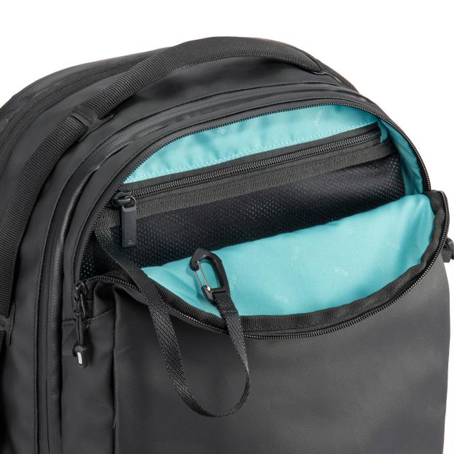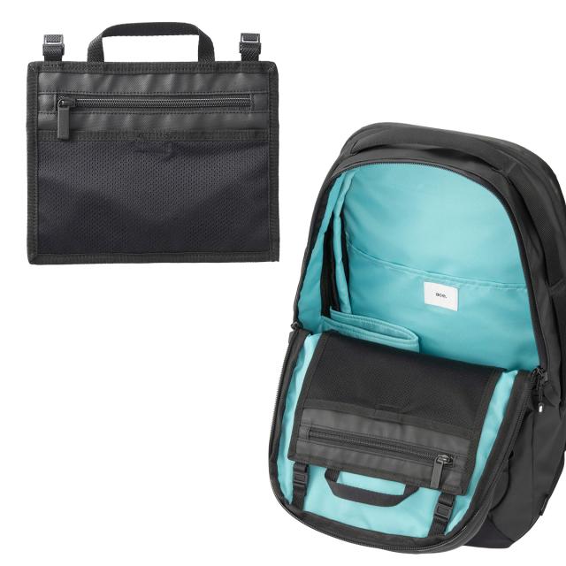 内装生地は視認性の良い、明るいブルー系カラーを採用。脱着可能なオーガナイザーポーチが付いています。