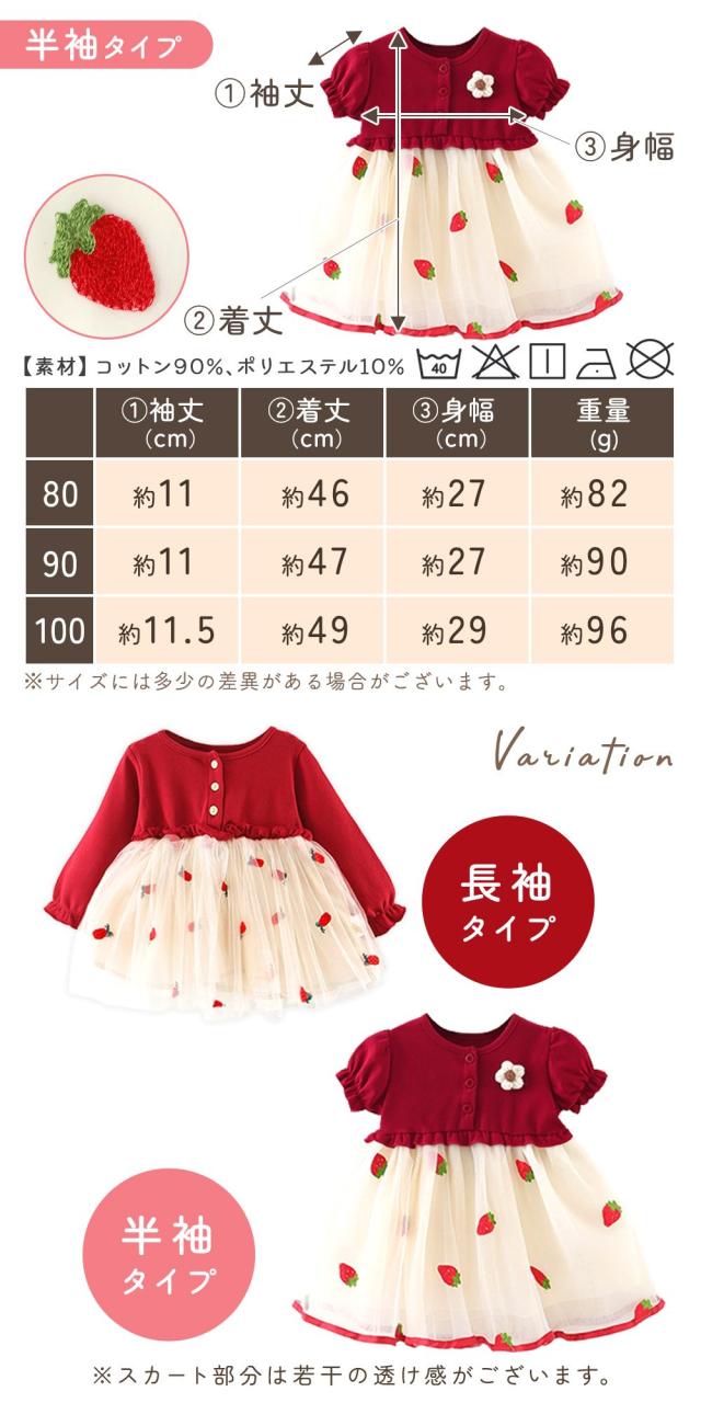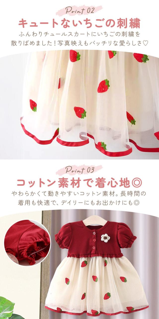 フルーツ柄/かわいいワンピース/保育園/幼稚園/ベビーワンピース/チュールワンピ/刺繍スカート/おしゃれ着/ガーリー/ガーリーファッション/コスチューム/ドレス風/1歳/2歳/3歳/季節行事/女児服/プレゼント/ギフト/出産祝い キッズワンピース/いちご柄/子供服/ガールズ/80cm/90cm/100cm/長袖ワンピース/半袖ワンピース/春服/夏服/秋服/冬服/通園/お出かけ/誕生日/記念撮影/コットン素材/チュールスカート/かわいい/写真映え/SNS映え/ナチュラル/おしゃれ/イベントドレス/ベビー/幼児/女の子/赤