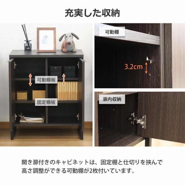 ・収納は、開き扉タイプの収納。収納する物に合わせて高さ調整が可能です(3.2cmピッチで3段階調整)。