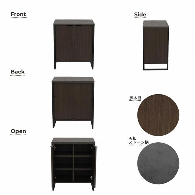 ストーン柄と木目、ブラックスチールの組み合わせがスタイリッシュでモダンなキャビネットです。