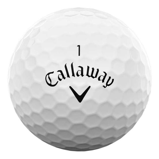 キャロウェイのなかでナンバー1のソフトフィーリングを実現し、アメリカでも大人気となっている「SUPERSOFTボール」が、2023年以来のリニューアルとなりました。今回は、ずば抜けたソフトなフィーリングはそのままキープしながら、ハイパーエラスティック・ソフトファスト・コアなどの素材の配合を見直したことにより、飛距離性能もアップ。前作よりもティーショット時のボール初速が高まり、ロングショットでのキャリーが大きく伸びるようになりました。また、フェースが開いたり、打点がばらついてボールをヒットしたりした場合でも、ソフトなハイパーエラスティック・ソフトファスト・コアが機能し、ある程度、サイドスピンを軽減してくれるので、方向性を改善してくれます。コアの周りには、ロングゲーム、ショートゲームの両面でパフォーマンスアップに貢献するハイブリッドカバーを引きつづき採用。さらに注目はラインアップで、通常のホワイト、レッドに加え、スプレーで色を帯状に吹きつけたようなスプラッターデザイン(ブルーとレッド)が追加。ラウンド中に自分のボールだと見分けやすいように、ラインアップを豊富にご用意しました。