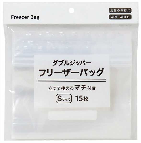 ダブルジッパーフリーザーバッグ マチ付き S(10×16×マチ4cm) 15枚入 (100円ショップ 100円均一 100均一 100均)