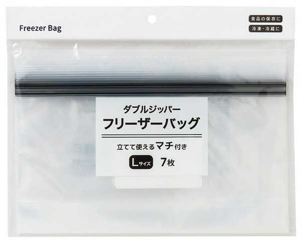 ダブルジッパーフリーザーバッグ マチ付き L(12.5×25×マチ6cm) 7枚入 (100円ショップ 100円均一 100均一 100均)